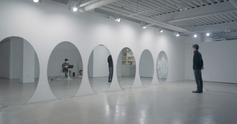 소개 한가지의 방법에 국한되지 않고 꾸준히 새로운 표현방법으로 ‘본다‘는 행위의 주체에 대한 질문을 되묻던 박제성은 시선 데이터를 물성화하여 설치하는 작품들을 선보이고 있다. 그는 거울로 자신을 바라보는 눈의 움직임을 아이트래킹 테크놀로지 기술로 데이터화하여 얻은 조형언어를 물성화하고 공간을 창조해왔다. 그 과정 속에서 다양한 방법을 구축해온 작가는 비물질적 행위의 존재방식에 대한 연구를 발전시킨 두 가지 신작을 선보인다. - 이경 (Different View) 다양한 각도의 면으로 배치한 스마트 글라스가 적용된 조각을 통해 투과되었다가 가려짐의 변화를 보여줌으로써 일상적 풍경에 새로운 그리드를 제공하고 익숙한 공간을 새롭게 해석하며 낯선 일상의 풍경을 선사한다. - 마리오트 맹점 (Mariotte’s Spot) 작가는 시선 움직임을 적용시킨 드론이 드로잉하면 거울 속 바라보던 장면은 가려지게 되고 그로 인해 보이던 부분을 보이지 않게 만든다는 모순적인 방식을 그려내고 있다. 그는 ‘본다‘는 행위가 어떤 의미인지 생각하게끔 이끌며 보는 것과 보는 것을 선택함으로써 외면하는 것을 이야기를 하고자 한다. ‘마리오트 맹점’ 작품은 전시장에서 직접 아이트래킹 테크놀로지 기술을 드론에 적용시켜 실행한 작업으로 퍼포먼스 과정은 영상으로 함께 소개할 예정이다. 작가는 두 작품으로 본다는 행위의 주체성과 이로 인한, 업과 인과에 대한 질문을 던지며 만들어진 작품을 보는 것이 아니라 본다는 행위를 통해 작품을 만들어내는 전복된 프로세스로 미술 작품의 가치를 다시 본래의 행위로 환원시켜 사람의 감각을 미술의 중심으로 돌려놓는다. (출처= 갤러리퍼플)