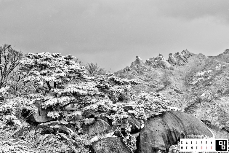 작가노트 2021 소나무-바위에 깃들다, 갤러리밈, 서울 어느 따스한 봄날 송화씨 하나가 바위에 내려앉는다. 그곳에 가만히 앉아 들숨 날숨, 꿈쩍도 않고 포기하지 않고 들숨 날숨. 어느 날 단단하게 닫힌 바위의 틈은 열리고, 송화씨 손을 살며시 잡아본다. 연하디 연약한 그녀의 손을 가슴 깊이 넣어본다. 그리고 또 들숨날숨 그들은 하나가 된다. 송화씨는 소나무가 되어 바위의 굳건함을 온 자태로 품어내고, 바위는 송화씨에게 내어준 틈 사이로 흙바람이 인다. 산다는 건 들숨 날숨 사랑한다는 건 포기하지 않는 것 하나가 된다는 건 서로의 숨결이 상대가 되는 것 평론글 산을 왜 오르나 묻고 싶었다. 산을 왜 오르나 묻고 싶었다. 물론 산을 좋아하고 자연을 가까이하는 것은 인간의 가장 근원적인 욕망이지만, 높은 산을 사시사철 오른다는 게 쉬운 일이 아닌 걸 모두가 잘 안다. 그냥 산을 오르는 게 아니라, 깎아질 듯한 절벽에 몸을 기대고 바위의 틈새에 발가락 끝을 대고 힘의 균형을 잡으면서 사진기 렌즈의 초점을 맞추는 일은 스스로 운명이라 받아들이지 못하면 하지 못할 일이다. 그래서 강레아 작가의 사진을 보고 있자면 등골이 서늘하거나 마음이 먹먹할 때가 많다. 그녀의 작업 시리즈에서 북한산 암벽에 있는 소나무는 많은 사람에게 사랑받는 주인공이다. 암벽 틈새에 뿌리를 박고 바위틈에서 비바람을 버티며 자라난 소나무를 볼 때면 더욱 그렇다. 꽃이 피고, 초록이 들고, 눈이 오는 풍경을 배경으로 했을 때도 그렇지만, 북한산자락 아래 도시의 아파트를 배경으로 한 소나무의 자태는 딱 그 말대로 한 편의 드라마의 주인공을 찍은 듯이 보인다. 사진에서는 피사체의 형과 색이 미적 요소로 깊게 관계된다. 그래서 인물, 정물 사진은 극도로 배경을 단순화하거나 피사체를 주목받게끔 구도를 만들어서, 주인공에 눈길이 가게 하는 것이 사진술의 정석이라 배웠다. 그러나 풍경 사진은 다르다. 대상과 배경이 혼재되어 있는 풍경은 시간, 분위기, 현상을 담기 위한 방법으로 주로 여겨진다. 그래서 풍경이 피사체와 만나게 되면, 배경이 되기 십상이다. 실제로 카메라 렌즈로 풍경을 바라보면, 무엇을 찍을까 보다, 무엇을 찍지 않아야 할까를 더 고민하게 된다. 그녀가 담아낸 북한산 소나무는 그러나 단순한 피사체는 아니다. 암벽에 뿌리를 내리고, 그녀가 자신을 향해 숨이 턱에 찰 만큼 오르고 올라야 볼 수 있다. 소나무는 바르게 자라난 모습이 아니다. 발레리나가 균형을 잡듯, 구불구불 움 틀어진 몸통과 꼿꼿하게 각도를 잡는 발가락 매무새를 가진 소나무는 잠시 그녀에게 자신의 품을 내어 보이고는 쉽게 대기의 안개 속으로 숨어버린다. 비바람이 오든 눈보라가 치든 암벽의 틈새에서 버티는 그 소나무를 강레아 작가는 마치 연인의 얼굴을 찍듯이 이리저리 돌려가며 사진으로 담는다. 소나무의 솜털 같은 씨를 본 적 있냐고 작가가 나에게 물어본 적이 있다. 모든 생명에는 씨가 있다. 아무리 크고 웅장한 나무라 하더라도, 암벽에서 용틀임하며 고고하게 있는 소나무도 그 처음은 바람에 날리는 솜털에 숨겨진 작은 씨 한 알에서부터 시작한다. 암벽의 작은 흙 알갱이들 사이에 자리를 잡고, 생명을 틔우기 위해서 버티고 살아온 소나무는 자연의 경이로움을 존재 자체로 보여준다. 들숨과 날숨, 인간의 생명 유지 활동에서 가장 신비롭고 경이로운 현상은 자연이 인간에게 준 공기이며, 인체가 스스로 들이마시고 내뱉는 들숨 날숨의 호흡으로 생명의 시간을 연장한다. 북한산 암벽의 소나무들도 마치 우리의 몸처럼 대기 속의 기운을 들숨과 날숨을 쉬며 자란다. 찬찬히 들여다보면, 사진 속 소나무는 강레아 작가를 닮았다는 생각이 든다. 서로 마주하며, 서로를 드러내는 이 작품들은 단순히 풍경 사진만이 아니다. 작가의 푼크툼은 세상을 살아온 시간의 존재, 그 대상을 피사체로 세상의 존재들을 위로하고자 한다. 하루 하루 들숨과 날숨을 쉬는 존재 모두가 자신의 세상에서 주인공으로 그리고 산의 암벽에 있는 그 소나무를 오늘 관객들은 전시장에서 만난다. 가슴을 펴고, 크게 숨을 들이쉬어 본다. 스스로 호흡하는 오늘에 감사하고, 작품 속에 담긴 자연이 주는 생명의 신비한 시간의 교훈을 마음에 담아본다. (출처= 갤러리밈)