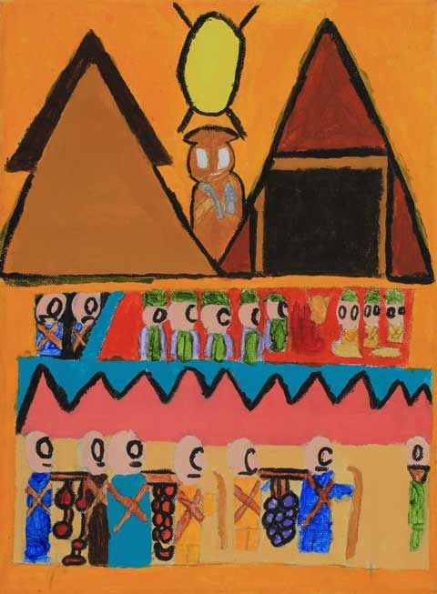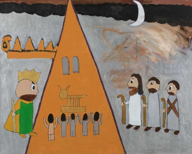 ‘재윤다움’이라 쓰고 ‘순전한 천진함’이라 읽는다. ★ 황혜영(미학-인문학자, 서원대 교수) 내가 이재윤 화가의 작품을 처음 만난 곳은 모리스 갤러리다. 2013년 당시 유성에 살 때 남편과 시내 산책을 나갔다가 마침 모리스 갤러리에 전시가 있어 들렀다. 여러 작가의 단체전이었는데 많은 작품들 중 유독 내 시선을 끄는 작품이 있었다. 정확히는 같은 작가의 두 작품이었는데 그 작가가 이재윤이다. 다른 훌륭한 작품들도 많았는데 왜 유독 그의 그림이 내 마음에 울림을 주었는지 설명하기는 쉽지 않다. 한 마디로 말하면 그의 그림은 다른 그림들과 달랐다. 첫 눈에 그의 그림들은 어린 아이가 그린 것처럼 투박하고 다소 유치하게 보였다. 하지만 그 그림들은 단순히 서툴고 투박하기만 한 것이 아니라 그 안에 왠지 보는 이로 하여금 더 들여다보게 하고 그 앞에 더 머물러 있고 싶게 만드는 묘한 인력이 있었다. 뭐라고 할까, 우리 모두가 아이 시절 지녔던 그러나 차츰 현실적으로 되어가면서 잃어버린 ‘순전한 천진함’ 같은 것이 그의 그림에서 뿜어져 나왔다. 그 순전한 천진함이 다른 어떤 작가의 그림에서도 볼 수 없는 재윤 화가만의 고유한 무엇sui generis을 창조해내고 있었다. 이번에 이재윤 화가가 모리스 갤러리에서 개인전을 다시 하게 되었다는 소식에 축하와 따뜻한 응원을 보낸다. 예전 전시 당시 작가의 집에서 작품들을 직접 보기도 하였는데, 최근 오랜 만에 다시 재윤 화가의 집에 가서 예전에 본 작품들 이후 이번 전시에 소개될 새로운 작품들도 보았다. 사진으로 볼 때는 종이에 그린 그림과 나무에 그린 그림이 잘 구분되지 않고, 작품의 크기도 잘 안 느껴지지만, 직접 보면 종이에 그린 그림과 나무에 그린 그림의 질감도 많이 다르고, 엽서만한 것에서부터 폭, 길이가 50cm 정도 되는 것까지 크기에 따라서도 작품 느낌이 다르다. 이재윤의 작품은 성서나 동화, 애니메이션에 나오는 기적같이 놀라운 이야기들을 소재로 한 그림들이 많다. 이번에 보니 그의 작품들 중에 작품 겉틀 안에 작은 틀이 구획된 작품들이 여러 작품 있었다. 소설이나 음악, 영화와 같은 진행의 장르는 사건의 추이와 시간의 흐름을 스토리전개에 따라 자연스럽게 담아낼 수 있지만, 그림과 같은 한 화면으로 된 장르는 사건의 추이와 전개과정을 담아내는 것이 쉽지 않다. 이재윤은 스토리를 화면에 담기 위해 다양한 방식으로 화면을 구획하여 성서나 동화 이야기 장면 장면들 각각에 독자성을 부여하면서도 차곡차곡 정해놓은 자리에 배치해준다. 때로는 만화의 화면구성처럼 직접 선을 그어 전체 스토리 안의 작은 스토리 공간들을 구획하기도 하고 때로는 가시적인 선 없이 화가 머릿속에서 화면을 분할하여 전체 스토리의 주요 장면들을 함께 담아놓는다. 그런가 하면 <천지창조> 같은 작품에서는 한 화면 상하좌우에 천체, 공중, 바다, 육지가 자연스럽게 어우러지도록 배치하고 6일간의 천지창조과정을 한 눈에 조감하도록 설계한다. 그의 작품에서는 밝고 선명한 천연색들의 절묘한 콘트라스트에서 나오는 역동감과 기분 좋은 생기, 투박하면서도 천진한 선들이 주는 정겨움, 간략한 실루엣과 숨김없는 표정들에서 느껴지는 투명한 영혼, 기적 같은 이야기들에 진심 놀라고 신나하고 분노하고 슬퍼하는 순전한 감탄과 감동, 이 모든 것들이 재윤다움으로 번져나온다. 그의 작품을 보고 있노라면 어느새 그가 내 곁에 다가와 손길로 나의 어깨를 툭툭 치며 내 안에도 있는 어느 누구와도 비교할 수 없는 나다움으로 걸작을 만들어보라고 미소 짓는 듯하다. <홍해를 지나며>에서 이스라엘 백성은 좌우로 갈라진 홍해 벽 사이에 서 있는 다섯 사람으로 표현되어 있다. 흥미로운 점은 다섯 명 모두 키도 비슷하고 뒷모습으로 그려져 얼굴 생김새도 서로 구분이 안 되는데다가 누가 앞서고 뒤서고가 없이 손에 손을 잡고 어깨를 나란히 한 채 홍해 길 위에 서있다는 점이다. 우리는 늘 비교하고 경쟁하며 누가 앞서고 누가 뒤서는지, 누가 더 잘나고 더 못났는지 따지곤 하지만 홍해를 건너는 기적에 비하면 인간들 사이에 크고 작고, 앞서고 뒤서고는 별반 차이도 의미도 없다. 홍해를 건너는 이들은 그저 하나님 베푸신 기적을 함께 지나는 길동무들이다. 홍해를 건너는 사람들 모습은 먼 나라 옛이야기 속 인물 같지 않고 우리 주변에서 볼 수 있는 평범한 이웃들 모습이다. 게다가 그들은 기이한 이적에 놀라는 모습이라기보다 평소 늘 그래왔다는 듯 일상의 모습이다. 그래서인지 문득, 매순간 우리가 지나는 이 일상의 길이 갈라진 홍해에서 드러난 뭍과 같은 것은 아닐까 하는 생각이 든다. 어쩌면 이 순간에도 우리는 우리를 덮쳐 삼키려는 위험들이 벽으로 밀쳐진 기적 같은 은혜 안에 있는지도 모른다.이들 홍해를 건너는 이들의 비슷비슷한 뒷모습에서는 신기하게도 신바람과 편안함이 느껴진다. 그들은 바다 벽이 쏟아져 덮칠까 곁눈질하지도, 애굽 군대가 쫓아올까 뒤돌아보지도 않는다. 두고 온 과거에 미련의 눈길도 주도 않는다. 그저 앞만 보며 가볍게 길을 간다. 보통 지나간 세월에 대한 미련과 앞날에 대한 