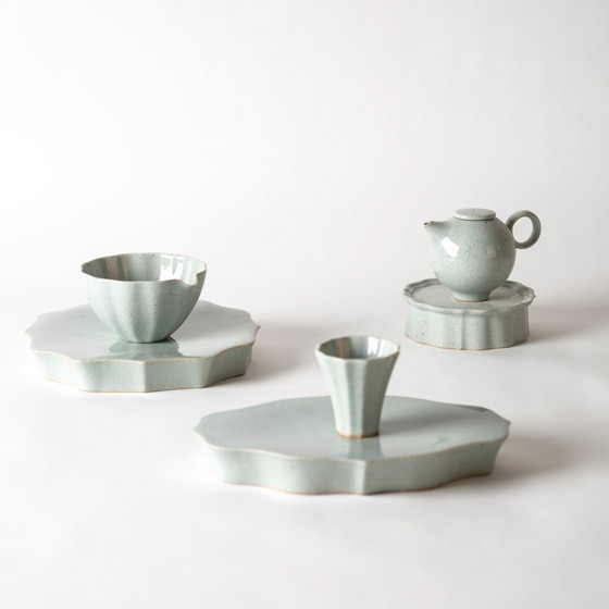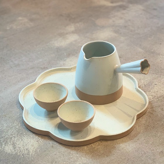 꽃 한 모금 A Sip of Flower 김영진 본 전시의 메인 작품은 꽃의 형상을 모티브로 제작한 찻잔과 화형굽접시 세트이다. 마치 꺾은 꽃 한 송이에 차 한잔을 따라주어 ‘꽃 한 모금을 마시다’ 라는 퍼포먼스를 연출해보고자 한다. 누구나 한번 쯤은 한 송이 꽃으로 고백을 해보지 않았던가. 그런 설레임이 느껴지는 5월의 봄이다. ‘나를 잊지 말아주시오!’ 라는 물망초의 꽃말처럼 언젠가 누군가에게 고백했던 그때를 떠올리는 마음속의 서정성을 담아 작업을 했다. 펜데믹 선언 이후 우리는 모두 경험해보지 못한 새로운 일상을 살아간다. 그러한 우리의 삶에 어쩌면 잊고 있었던 감성이나 정서를 다시 꺼내어 스스로를 위로해 보는 것은 어떨까요? 산청슬립을 베이스로 배합한 소지를 만들었고 배출주입성형기법(Drain casting)을 이용하여 제작하였다. 흙 맛이 나는 슬립캐스팅 작품을 연구하였고 자연스럽고 편안한 색감을 보여주고자 한다. (출처= 모리스갤러리)