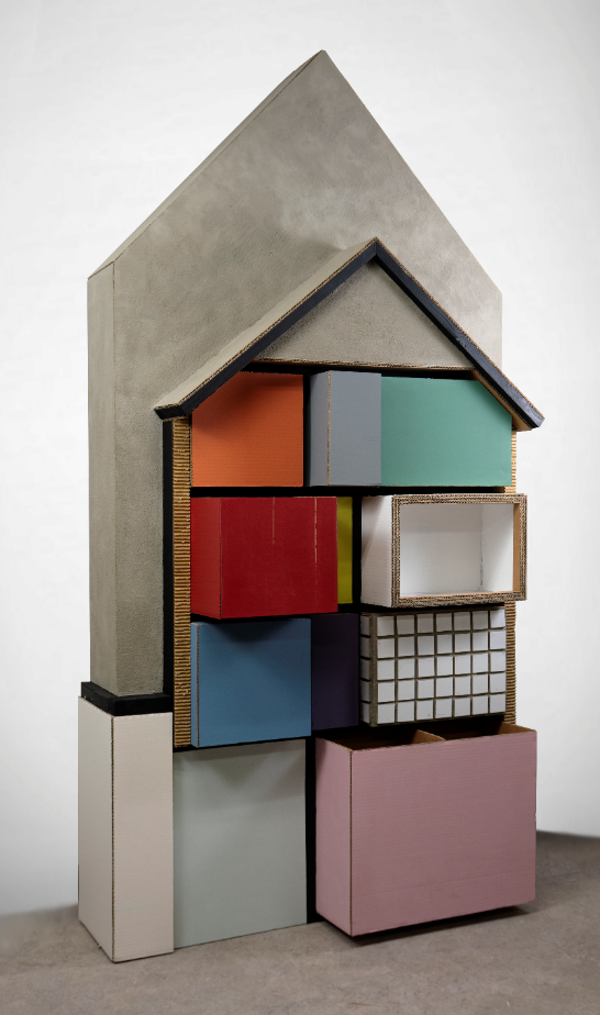 허물어진 벽체나 계단 같은 집의 파편들을 골판지로 재현하고 채색해 사라진 기억과 삶의 이야기들을 복원해 보여준다.