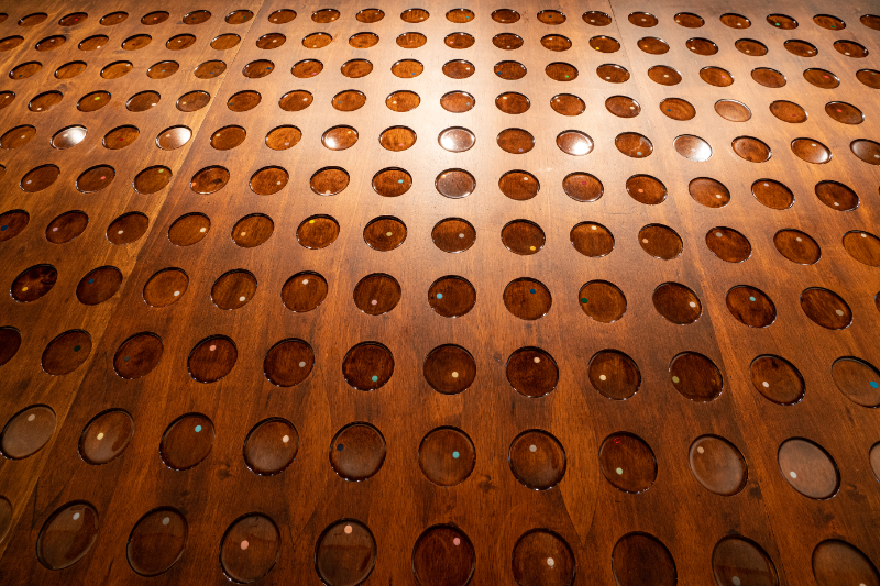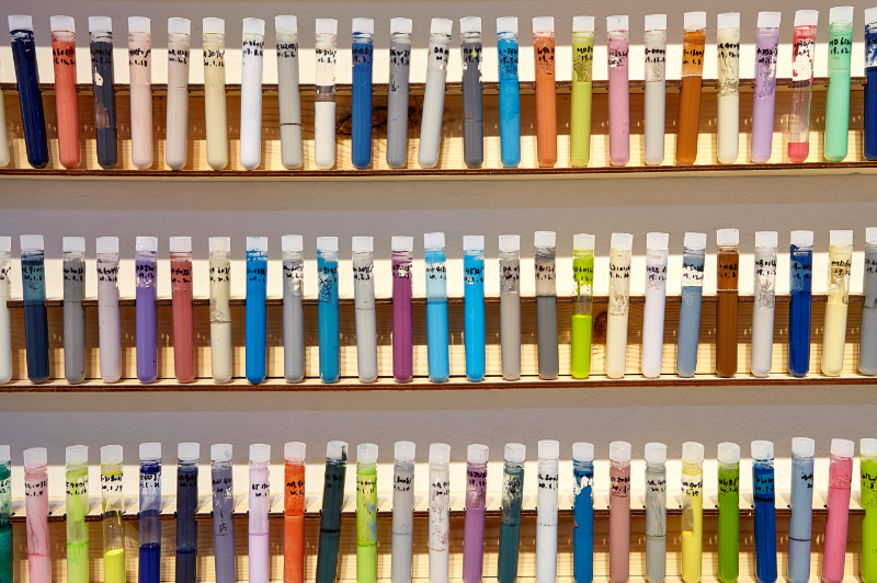 정정하 작가는 일반적으로 사용되는 물감의 색이 아닌 건축용 페인트와 에폭시 레진을 사용해 색을 보여준다.