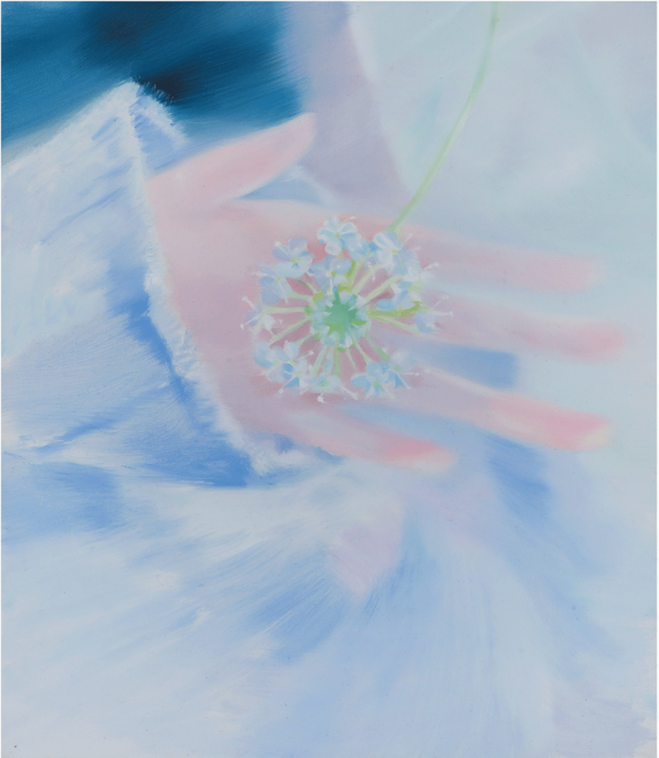 ■ 전 시 명: 갤러리 도스 갤러리도스 기획 황은실 ‘The first touch’ ■ 전시장소: 서울시 종로구 삼청로 7길 37 갤러리 도스 ■ 전시기간: 2021. 5. 19 (수) ~ 2021. 5. 25 (화) 잔상을 보듬다 갤러리도스 큐레이터 김치현 본질이라 불리는 개념은 껍데기가 아니라고들 하지만 시각과 촉각에 크게 의존하여 세상을 받아들이는 사람에게 어쩌면 대상의 표면이야말로 사사로운 이야기로 포장되지 않은 진정한 모습일 수 있다. 황은실의 작품에서 사물의 표면을 이루는 주된 원색은 높은 채도로 그려졌음에도 전체적으로 밝은 화면속의 환경과 어우러진다. 입체적인 설명이나 색의 종류가 생략되고 절제된 표현은 관객으로 하여금 화면속의 상황에 간편히 몰입하기보다 충분히 거리를 유지하도록 한다. 작품에 보이는 형상은 실제로 존재하는 사물을 그대로 복제한 것이 아닌 작가의 눈과 표현을 통해 편집된 가공물이며 잔상이다. 캔버스 표면을 스치듯 얇고 빠른 속도의 붓질로 칠해진 형상에서 작가가 작품을 제작할 당시 취한 몸의 움직임과 속도감이 드러난다. 물결의 불규칙적이고 끊임없는 움직임과 약한 바람에도 나부끼는 인물의 머리카락, 유리진열장을 통해 새나오는 차가운 빛의 산란은 매순간 변화하는 사진 밖 세상의 특징을 보여준다. 붓털의 끝자락이 물감의 점성으로 인해 갈라진 자국은 정지된 화면에 동적인 힘을 부여하며 작품을 바라보는 관객의 시선이 주저하지 않고 형상을 더듬도록 유도한다. 짧은 시간단위로 변화하는 형상을 담기위한 신속한 묘사는 사물에 깃든 사연이나 온도를 재현하기보다 동시대 사람들이 소셜 미디어에서 이미지를 소비하는 방식과 닮아있다. 이처럼 작가가 일상적인 사물을 재현함에 있어 겉핥기의 방식을 취함은 작품의 깊이를 얄팍하게 만들기 위함이 아니다. 작가가 자신의 화면에 옮기려고 선정한 사물들의 공통된 특징은 얇고 부드러운 질감을 지니고 있거나 자극적이지 않은 온도를 지니고 있다. 앞서 이야기한 강도를 지닌 물체들은 섬세한 감각을 요구하지만 알아채는 순간부터 편안함을 준다. 얼핏 무신경한 듯 보이는 가볍고 경쾌한 붓질은 물감의 물리적 성질을 최소화하여 칠해졌음에도 대상이 지닌 질감을 잃어버리지 않고 필요한 만큼만 구체적으로 재현하고 있다. 대상이 존재했던 당시의 현장에 있지 않았다면 오롯이 파악할 수 없는 이야기가 필연적으로 지니게 되는 군더더기들이 빠져나간 상태이다. 사연이 제거되고 남은 자리가 만들어낸 여유로 인해 관객은 화면속의 사물을 읽으며 자신이 알고 있는 이야기를 작품에 끼워 맞추기보다 평면으로 정제된 형상 자체에 집중하게 된다. 그렇기에 작품의 얇은 두께에도 불구하고 관객은 작가가 관찰한 대상을 손끝으로 부드럽게 만져보듯 촉각적인 감상을 할 수 있다. 황은실은 동시대 사람들이 사소한 일상을 기록 할 때 간편하게 사용하는 작은 화면의 테두리를 빌려 속도감이 느껴지는 그림을 그린다. 하지만 유화라는 방식은 표현과 별개로 오랜 시간이 소요될 수밖에 없다. 자신이 바라보는 대상이 지닌 시시각각 변화하는 특성을 담아내기 위해 캔버스를 향한 작가의 움직임은 신중하고 차분히 계산되어있다. 플라스틱 버튼을 누르는 가벼운 손짓은 오늘을 살아가는 사람들에게 소중하고 인상 깊은 짧은 순간을 영원히 남길 수 있을 것이라는 최면을 건다. 지나간 시간과 기억에 남겨진 잔상에 대한 갈증은 매순간 과거가 되고 있는 별 볼일 없는 지금을 소중하게 만드는 이유이다. 황은실은 회화라는 느린 장르를 통해 역설적으로 동시대 사람들이 손끝으로 빠르게 넘겨버리는 수많은 일상 속 이미지들이 남긴 흔적을 비로소 천천히 감상하게 되는 휴식의 자리를 마련한다. 작가노트 여러 장의 사진 혹은 여러 개의 비디오로 담아질 수 없는 시각경험들은 어떻게 회화로 옮길 수 있는 것인지에 대해 고민했다. 호크니가 말한 바와 같이 사진은 그것이 놓치고 있는 약간의 차이 때문에 세계로부터 크게 빗나간다. 내가 사진을 바탕으로 회화적 공간을 만들어낼 때 관심있는 것 역시 바로 사진의 그 ‘빗나가는 지점’이다. 사진은 공간이 아닌 그저 표면만을 바라보지만, “공간은 표면보다 훨씬 신비롭다.” 내가 이미지에 매료되는 순간에 가장 중요하게 작용하는 것은 빛과 색이다. 빛은 그것이 아니었다면 드러나지 않았을 대상의 물성을 드러내며, 그로 인해 나는 순간을 조금 더 촉각적으로 지각할 수 있다. 색은 지나간 순간을 기억하는 주된 인상으로 작용한다. 색은 감정을 불러일으키고, 특정한 분위기를 만든다. 삶의 강렬한 순간, 일상의 아름다운 순간들은 스쳐 지나가는 인상을 만들어내는 속도감 있는 붓질들과 선명했다 사라지는 고정되지 않는 형태들, 가볍고 사랑스러운 색채들로 캔버스 위에 담긴다. (출처= 갤러리도스)