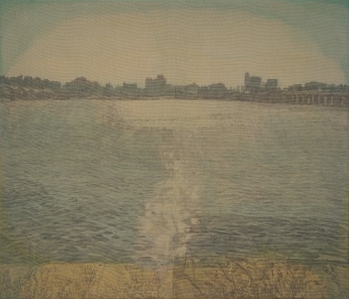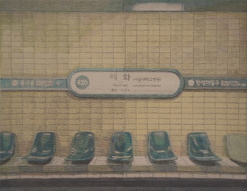 Azur skies and cotton clouds, golden glitters of sand, a quietly babbling river, a ray of sunlight through the glass window pane, and the saturated dusk parallaxed on the far windscreen of a hasty metro bus. Something is sullen about these scenes. Our paths cross only for a moment before we must bid farewell in this reality bound by time. Somehow miraculously surviving, we are embraced, engulfed in the landscape for only the briefest of moments before it fades away into the mist. Perhaps we were drawn to the idea of creating images, a hopeful paddling against the merciless futility that time brings upon our reality. The etymology of image can be traced back to imago, meaning copy, imitation, likeness; statue, picture, often in the sense of the portrait of the deceased or a death mask. That paddling against the current, that desire to grasp at all that must fade, that need to prolong those moments in image; has been driving the history of art. In his solo exhibition CMYK, Sejin Kwon presents landscape paintings with his variations on the rubbing takbon method. The method begins with a sheet of ink paper over the canvas, then and a printed landscape photograph is layered over the carbon paper, then marked over with form and shade using a common office-stationary ballpoint pen, such as Monami or Bic. The practice much closer resembles marking than drawing. After the markings, Kwon adds colors. The CMYK color model is a subtractive color model, an acronym for Cyan, Magenta, Yellow, and Key Plate: those are the colours used in the printing process. The sheet of ink paper is the Key Plate in this case, leaving only CMY colors. Kwon color-painted the details first and ended by plain-brushing color over the entire canvas. 2014 was the year he first used ink paper to transpose images to the canvas. His preferred means of painting was by tracing an image superimposed over a sheet of ink paper to leave a print on the canvas underneath. He prefers this method as it is most mechanical, removing as much subjectivity as possible from the artist’s side of the brush. Yet this does not absolve this process of all subjectivity. It is merely less subjective. The artist has already made spontaneous decisions on the weight and thickness of the print paper which will go over the ink paper, more decisions on the canvas material type, ballpen type, and how much physical pressure to apply while marking over the ink paper. Ink paper tracing can squarely transfer a photographic image unto canvas. However, contouring over carbon paper does not yield contoured lines on the canvas, because ink paper has a very limited number of prints. This severely limits the ability to contour with bolder lines with greaer nuance. Any sort of expression of the ball point pet must be applied in a single stroke of the ballpen, with dynamic pressure applied while tracing the image. The copied images on canvas are sceneries that Kwon saw in person: the Mus?e de l'Orangerie in Paris, Suseong Lake in Daegu, Seonyudo Island and Hyehwa Station in Seoul. For his latest works, Kwon used landscape photographs he took himself within the past two years. The photographs were ink-copied unto the canvas landscape as-is, without any editing or processing. Regardless of fidelity, the specific spatial characteristics seem unimportant. Kwon describes his paintings as being more about recreating photographic images than drawing actual objects. He prefers the photographic medium for its ability to taxidermy a moment in time, quoting Gerhard Richter claim that photography was “pure image.” Kwon’s latest works started with a digitally photographed image, but the artist envisioned the image getting broadcast over waves on an analogue CRT screen television. Analog televisions with the hair-raising glow of the cathode-ray tube, the halftones completely visible to the naked eye. With an academic background in oriental painting, Kwon has an appreciation for classical paintings such as Early Spring painting (早春圖) by Guo Xi (郭熙, active 11th century Song Dynasty, 960?1279) His desire to recreate CRT television screens is like the romance of classical paintings tangible in the faded silk tapestry and paper. He wanted to introduce a sincere depth of expression and time. While modern interpretations of Oriental paintings focus on the reproduction of traditional techniques or ideas, Kwon focuses on reproducing the passage of time that is so viscerally tangible in the Oriental paintings themselves. The landscape paintings use ink paper on canvas, an echo of our forefathers carbon-copying mason-crafted gate names to preserve the beautiful calligraphy of the written name. To offset his observation and record-keeping of things from the past, Kwon is also quietly observing and recording life in the present. Invoking the past through classical paintings, faded photographs, and CRT television screens, the artist seems to meditate on the unavoidable truth of our present becoming the past far too quickly. The photographed scenery was present for him when the photo was taken, but as time passes, the same photo becomes an image or reproduced present. As such, it is unavoidable that image arrives after the present. The actual landscape is also no different. This present landscape did not exist in the past; nor will it exist in the future. Blue skies and clouds, golden sand that reflects light, rivers flowing through the river, sunlight shining through the glass windows, and the glow beyond the fast-running bus car windows. Revisiting that thought, it feels much more sullen. (출처 = Gallery2)