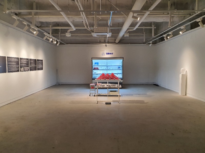 관객은 흔한 수산 코너라고 멀리서 인식하지만 가까이 보면 플라스틱으로 만든 수산물인 것을 알고 흠칫 놀란다. 그 흠칫 놀라는 지점을 붙잡고자 한다.