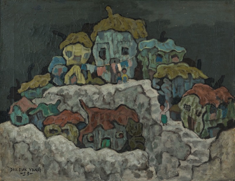 “동화를 쓰는 기분으로 그림을 그린다. 마치 아픈 매를 맞으면서도 웃어야 하고 찢어질 듯한 역경에서도 마음만은 행복하게 즐겨야 하는 모순처럼...” - 양달석 회고록(1975) 중에서 정치와 권력, 역사와 예술은 어떠한 관계 속에 있는가? 다양한 시대의 소음들은 어떠한 방식으로 우리의 삶에 작용 되어 왔는가? 이러한 질문들은 우리의 삶과 역사를 되짚어 보게 한다. 한국의 근현대사는 치열하고 기이한 상황 아래에서, 이따금 우리의 울분을 깨워낸다. 그 안의 예술은 더욱이 그렇게 존재해 왔다. 여산 양달석은 1908년에 태어나 한국 근현대사의 질곡을 경험하며 살았다. 일제강점기, 해방공간, 전쟁, 분단국가와 강력한 이데올로기의 정권까지. 죽고 사는 것, 먹고 사는 것이 우선시 되었던 우리의 20세기는 그렇게 시대적 모순과 억압된 체제 아래서 모든 이의 삶을 처절하고 힘겹게 버텨내도록 만들었다. 전업화가, 그리고 일곱 식구의 가장으로서 살아온 여산의 삶은 어땠을까? 21세기 최첨단의 자본주의 속에 살아가는 우리가 그 모든 감정들을 이해할 수 있을까? ‘여산(黎山)’은 양달석 화백의 호다. ‘새벽녘의 희뿌옇고 어스름한 산’이라는 작가 자신의 설명은 그의 생과 시대적 배경, 또한 작품 속에 그토록 담고자 했던 가치들을 통해 다시금 그 의미를 짐작해 볼 수 있다. 소와 목동, 낙원과 동심의 세계, 동화와 민요 화가,, 여산을 대표했던 이러한 단어들은 그의 작품 속 조형미와 일치한다. 그러나, 보다 깊숙이 그의 작품을 들여다보면 여산의 새로운 면모들을 느껴볼 수 있다. 실제 1950년대 이전 여산의 작품들은 한 예술가의 비폭력적 저항 의식이 느껴진다. 회색빛의 어둡고 애잔한 분위기가 감도는 농촌 풍경, 힘겹게 살아내고 있음을 가감 없이 드러내 보인 서민들의 생활상, 혹은 오히려 그러한 서민들의 삶에서 새로운 세상의 희망을 담아내고자 했던 농민들의 강인한 모습까지. 이렇듯 여산이 표현한 한국 사회의 단면과 새로운 희망들은 암울한 시대 속 한 예술가의 강한 사회적 의식이 담겨져 있었다. 그러나. 이러한 여산의 사회적 의식들은 소와 목동을 즐겨 그리던 1950년대 후반 이후 작품들에서 쉬이 찾아보기 힘들다. 혹은 그렇게 알려져 있다. 이 시기 작품에서 주로 찾아볼 수 있는 아이들과 자연, 목가적인 농촌 풍경들은 흔히 새로운 낙원, 동심의 세상으로 해석되어 진다. 그렇다면, 그러한 낙원은 암울한 시대를 넘어서고자 했던 새 세상으로의 희망과는 무관한 것일까? 여산의 유족과 화우의 증언, 작가 자신의 회고록과 기고문들은 그러한 의문을 풀어 주었다. 더불어 소와 목동을 즐겨 그리던 시기 역시, 안타까운 사회상에 대한 비판적 의식이 느껴지는 작품들을 함께 작업했던 사실을 발견할 수 있었다. 그렇다면 우리는 이렇게 다양한 그의 작품에서 무엇을 보아야 하는가? 푸른 색감이 감도는 생활 풍경, 강한 에너지를 지닌 농민들의 모습, 어두운 시대 속 힘들었던 서민들의 모습, 고통 없는 낙원 속에서 뛰노는 소와 어린 아이들의 모습이 은유했던 또 다른 의미들까지. 잘 알려지지 않았던 다양한 그의 화풍과 숨겨진 은유들은 안타까운 사회 현실에 대한 작가의 시선, 이를 넘어서고자 하는 사회적 바람과 이를 진정으로 표현해 내고자 했던 작가의 의지를 짐작케 한다. 결국 작가는 어두운 밤을 걷어 내고 찾아온 새벽녘의 희뿌연 내일의 희망처럼, 암울한 시대를 넘어선 새로운 세상에로의 예찬을 끊임없이 표현해 내고 있었던 것이다. 이러한 여산 양달석의 삶과 예술을 통해, 사회를 향해 외치는 그의 강한 메시지를 느껴보고, 시대의 억압과 권력, 그 아래의 예술과 예술가의 삶에 대해 고민해 볼 수 있는 시간을 가져보길 바란다. (출처= 경남도립미술관)