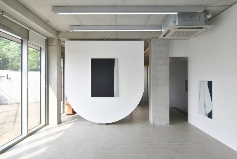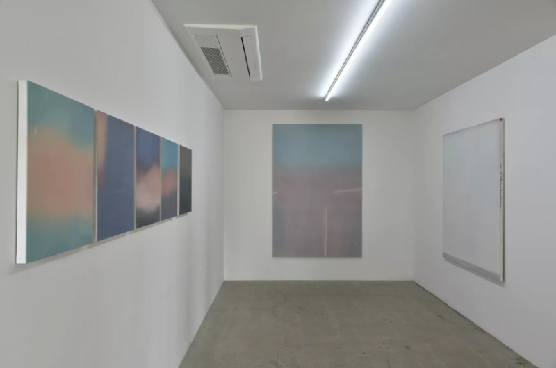 그림은 무엇을 원하는가 이성휘 이진형은 다양한 시각 매체들이 생산해내는 이미지들을 수집하여 이 이미지들을 반복적으로 바라보는 습관이 있다. 지속적으로 이미지를 들여다보는 습관으로 인해 이진형은 이미지를 처음 수집할 당시 의미나 맥락, 성격에 대해 파악하게 되지만, 시간이 지날수록 다른 부분들이 눈에 들어오기 시작하여 이미지가 처음에 보여주었던 것들이 희미해지는 순간을 조우하게 되었고, 이를 흥미롭게 여기게 되었다. 이 지점을 이진형은 대상과 대상 사이 어딘가에 위치하는, 또는 정적과 소음의 어느 중간 즈음이라고 표현하는데, 이러한 지점에 놓인 이미지들을 작업의 재료로 삼으며 작가는 이미지가 가진 분위기의 질감과 구조적 윤곽을 부분적으로 포착하여 화면을 구성하고자 한다. 이렇게 탄생하는 이진형의 회화는 원래의 이미지에서 얼마나 탈각해 있을까? 작가는 자신의 회화가 이미지가 지녔던 원래의 맥락에서 이탈하여 독립된 개체처럼 보이기를 바라면서, 그 희미해지는 지점을 역설적이게도 보다 명료하게 포착해 작업을 정확히 그곳에 위치시키고자 노력한다. 핀홀: 눈의 역할 이진형의 회화에서는 눈의 역할이 중요하다. 작가가 이번 전시의 제목을 ‘핀홀’로 결정하게 된 이유에는 핀홀 효과라는 현상이 작가의 습관이자 작업 방식과 일견 닮아 있기 때문인데, 이 핀홀 효과는 눈을 찡그리면 눈 앞의 상이 좀더 선명하게 보이는 현상을 일컫는다. 작가는 그림을 그릴 때 무의식적으로 눈을 찡그리는 버릇이 있다고 말한다. 결과적으로는 완전히 선명해 보이는 이미지가 아니라 다소 흐릿한 이미지를 우리에게 제시하지만 이 선명함이나 흐릿함의 정도는 작업 과정 중에 끊임없이 찡그린 눈으로 캔버스를 바라보면서 작가가 선택한 어떤 지점이다. 마치 상을 얻어내기 위해 오랜 시간을 필요로 하는, 또한 구멍의 크기와 거리 조절의 섬세함 때문에 선명한 이미지를 획득하기가 어려운 핀홀 카메라처럼, 그의 회화는 대상과 눈 사이를 오가며 어떤 중간 지점에서 결정되는 초점 거리와도 같다. 그리고 이렇게 결정된 그의 작품이 지니는 미지의, 그러나 분명한 초점 거리는, 작품을 대면하는 관람자로 하여금 앞으로 다가서거나 뒤로 물러서서 좀더 선명한 상을 포착하려는 움직임을 유도한다. 이때 눈이 파악하는 정보가 몸의 움직임을 이끄는 것이다. 작품 앞에서 눈은 당연히 이미지의 정체를 파악하려는 수순을 먼저 밟는다. 그러나 그의 그림은 쉽사리 힌트를 주지 않고, 눈이 발견하는 것은 캔버스 위에 고르게 도포된 물감의 표면 질감과 발색이다. 이 표면은 형상을 보여주지 않고 먹먹한 느낌을 가득 전달한다. 캔버스 표면을 훑어 내려가는 눈은 환영을 거부당한 채 물감만 아니라 주변의 소리까지 흡수한 듯한 먹먹한 캔버스 표면 앞에서 서성이게 된다. 이미지에서 이탈하려는 회화 이진형은 사진을 참조하되 끊임없이 원본 이미지에서 이탈하려는 시도를 해왔다. 2010년대 중후반 작업들을 보면 그는 전부터 사진을 참조해왔지만 원본 이미지의 충실한 재현보다는 캔버스 위에서 새로이 구성되는 이미지의 표면을 만들어내는데 관심을 두고 있었다는 점을 알 수 있다. 흥미로운 점은 시간이 흐를수록 이진형의 캔버스에서 붓질이나 물감의 얼룩이 사라져가고 매끈한 표면을 추구했다는 점이다. 이 표면에는 레이어가 있되 캔버스 화면 위로 켜켜이 중첩되는 것이 아니라 화면 아래로 침잠하는 레이어가 쌓인다. 모든 흔적과 제스처는 측정할 수 없는 하나의 깊이를 지닌다. 예컨대, 작가가 참여했던 그룹전 《지표면이 융기와 침강을 반복한다》(신한갤러리 역삼, 2018)와 첫 개인전 《비원향》(프로젝트 스페이스 사루비아, 2020)에 소개되었던 작품들은 3-4년의 짧은 시간 동안 그가 회화 표면을 다루는 방식이 어떻게 변했는지 잘 보여준다. 모두 <Untitled>라는 제목을 가진 이 작품들은 그림이라는 것 외에는 이미지의 내용을 담지 않기 위해 무던히도 애쓴 티가 역력하다. 작가는 이미지에 대한 설명이 불가능하도록 이미지의 부분 또는 파편, 아니면 애매한 상황을 선택하였다. 원본 이미지의 어떤 부분이 캔버스로 이동해와서 자리를 잡았는지 알 수 없게 했다. 구체적인 형상이 없는 이미지이기 때문에 결과적으로 관람자는 화면의 구조나 표면에 좀더 시선을 둘 수밖에 없게 된다. 아울러 그림이 공간과 관계 지어지는 방식을 살피게 된다. 이 순간 회화는 회화 그 자체로서 공간을 점유하게 된다. 특히 《비원향》에 소개된 작업들은 마치 사루비아 공간의 일부인 것처럼 벽과 바닥, 기둥을 의식할 뿐, 붓질을 통해 만들어질 수 있는 작가의 감정이나 제스처를 좀처럼 전달하지 않는다. 당시 그림들을 추상적이라고 표현할 수 있다고 한다면, 그야말로 abstract, 설명을 줄이고, 감정을 줄이고, 오로지 공간과 그 공간을 채운 공기를 향해 회화 표면이 열려 있었기 때문이리라. 회화 표면에서 벌어지는 사건 이번 개인전에서 작가가 ‘무제’라는 제목 대신 개별 제목을 암시하거나 염두하고 작업한 작품들이 있다. 이는 이미지에 선험적인 정보를 제공하지 않으려 한 기
