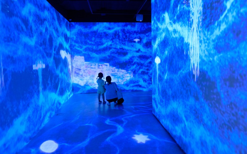 바다에 대한 다양한 상상력을 경험할 수 있는 오감 체험형 전시 신세계갤러리 센텀시티는 여름을 맞이하여 6월 12일부터 9월 26일까지 바다를 주제로 한 오감 체험형 전시 '웨이브 스플래시!'를 개최합니다. 전시에는 파도와 고래, 바닷속 오로라와 심해 생물 등이 프로젝션 맵핑, VR, 키네틱 아트로 재해석되어 전시장 내에 펼쳐지며 관람객들은 각 작품을 체험하며 바다에 관한 다양한 상상력을 키워나갈 수 있습니다. 전시는 총 일곱 개의 섹션으로 나뉘어지며 파도를 색색의 5겹의 레이어로 표현한 작품으로 시작되어 바닷속을 경험하다가 다시 해변으로 나오는 시나리오로 구성되어 있습니다. 각각의 공간은 그 공간을 맡은 작가의 상상력에 의해 연출되어 있으며, 작가의 개성에 따라 다양한 변주를 보여주어 관람객으로 하여금 일곱 가지의 바다를 경험하는 느낌을 선사합니다. ‘웨이브 스플래시!'는 전시장 내 구현된 볼풀장 등으로 인해 아이들만을 위한 전시라고 생각할 수도 있지만 꼭 그렇지만은 않습니다. 동시대 미디어 아트의 최상위 난이도인 파티클 기술을 복도 프로젝션 맵핑으로 구현한 바닷속 풍경은 성인들에게도 잊지 못할 시각적 스펙터클을 선사하며, 기하학적인 계산이 가미된 키네틱 아트와 미술계에서 최근 이슈가 되고 있는 VR 아트 등은 새로운 시각적 즐거움을 관람객에게 던져줍니다. 또한, 송정(부산)의 서핑 크루들이 구성한 마지막 해변 섹션에서는 재미있는 '인생샷'을 간직할 수 있습니다. 작가들의 개성에 따라 구현된 바다의 다채로운 모습들을 즐기며, 아이들에게는 잊지 못할 추억과 경험을, 성인들에게는 코로나로 지친 심신을 달래는 휴식의 시간이 되시길 바랍니다. (출처= 신세계갤러리센텀시티점)