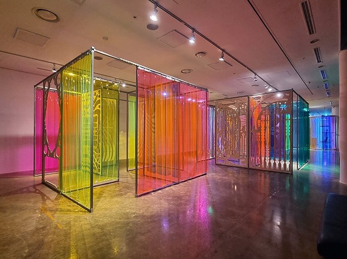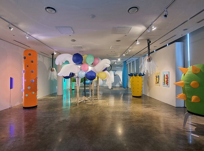 세종문화회관(사장 김성규)은 6월 29일(화)부터 9월 12일(일)까지 북서울꿈의숲 상상톡톡미술관에서 《빛나는 기억 정원》을 개최한다. 이번 전시는 여름방학 기간을 맞이하여 어린이와 가족이 함께 즐길 수 있는 체험 전시로 마련되었다. 참여 작가인 STUDIO 1750은 일상에 대한 관심에 예술적 상상력을 더해 새로운 풍경을 만들어내는 설치 미술 팀이다. 이들의 작업은 팬데믹으로 인한 사회적 우울, 기후 등 환경 변화와 먹거리 문제와 같은 현실을 향한 관심에서 출발하여 미래와 과거에 대한 상상으로 이어진다. 이들이 구축하는 상상 세계는 어둡기보다는 환상적이고 재미난 모습으로 상상력을 자극하고, 나아질 미래에 대한 기대감을 갖게 한다. 제1전시실에서 선보이는 〈Switch – 전환장치〉는 미로 형태의 설치 작품으로, 관람객이 미로 속을 직접 이동하며 감상할 수 있다. 색색의 비닐과 독특한 무늬로 채워진 공간을 지나며 현실의 고민을 잠시나마 잊고 기분을 전환하길 바라는 마음을 담았다. 제2전시실의 <공중정원>은 상상 속 미래의 동식물을 공기조형물로 구현한 작품이다. 고대 생물을 모티브로 하여 원시림의 동식물을 닮은 괴상하고 발랄한 미래의 상상의 정원을 표현하며, 변화한 생물들과 함께 살아갈 방식을 고민하게 한다. <공중정원>이 미래에 대한 상상이라면 제3전시실의 <반짝일 기억>은 과거에 대한 반추이다. 기억의 조각들이 모여 한 사람을 구성한다는 생각에 착안하여, 빛나던 순간의 기억을 반짝이는 금빛 필름지로 형상화했다. 한켠에는 관람객 참여 코너도 마련되어 있어 관람객이 각자의 소중한 기억을 공유하고 서로를 향한 응원의 메시지를 남길 수 있다. 주말에는 어린이와 부모가 함께 참여하는 전시 연계 체험프로그램 ‘바람을 이용한 입체조각 프로젝트’를 진행한다. 비닐을 재활용해 각자의 상상 동물을 공기조형물로 만들어 공원에서 날려보는 예술 체험 활동이다. 참여자들은 북서울꿈의숲 공원 녹지에서 뛰놀며 자연스럽게 전시 《빛나는 기억 정원》에 담긴 환경에 대한 문제의식을 익힐 수 있다. 어린이 한 명당 3,000원, 2인 이내의 보호자는 무료로 참가할 수 있으며 세종문화회관 홈페이지에서 사전 예매 가능하다. (출처=꿈의숲 상상톡톡미술관)