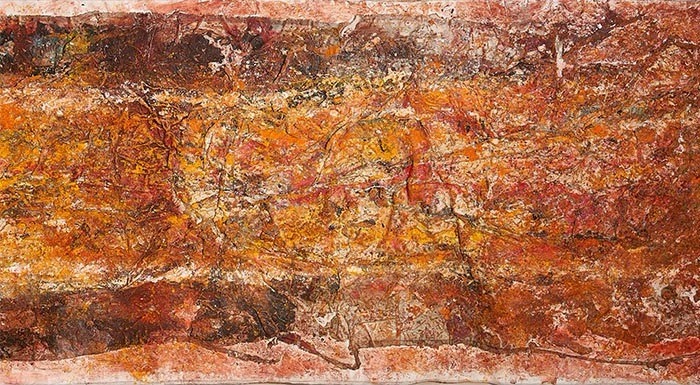 대립된 현실에서 공생을 염원하는 주술적 회화 이번 전시회에 선보이는 고성만의 작품들은 이러한 분단의 현실을 직시하고 대립과 갈등을 초월한 화합에의 상상을 조형화한 작업들이다. 전시의 타이틀로 내건 ‘상상공생'은 이러한 현실에 대한 대안이자 상상으로 밖에 이루어질 수 없는 어두운 현실을 암시하고 있다. 그가 대안으로 내세운 공생의 개념은 미국의 생물학자 린 마굴리스의 공생이론에서 착안한 것이다. 분단의 현실을 공생과 상생의 관계로 만들기 위한 고성만의 예술적 전략은 머나 먼 미래의 시점에서 현재를 바라보는 것이다. 역사의 교훈을 보면, 부조리한 사건은 언젠가는 어린 시절의 불장난처럼 여기게 될 것이고, 어리석은 과거를 관조적으로 바라보며 회상할 날이 오기 때문이다. 이것은 문제가 해결된 미래의 시점을 상상함으로써 현재를 관조적으로 바라보는 방식이다. 이번 전시회의 하이라이트는 가로가 약 9m에 달하는 초대형 작품<슬픈 이카루스의 전설> 이다. 고성만의 작품에서 미사일은 더 이상 강력한 무기가 아니라 바다 속에서 수천년이 지난후에 발견된 화석처럼 보인다. 이카루스의 추락에서와 같이 인간의 무한한 욕망과 어리석은 집착에 대한 경고가 역사적인 교훈으로 다가오는 작품이다. 바닷물 속에서 오랜 시간동안 용해되고 침식된 것 같은 미사일의 질박한 표면은 이제 무기의 기능을 상실하고 생물과 미생물 간의 공생의 현장처럼 보인다. 여기에는 공생이라는 자연의 섭리를 통해 인간의 욕망과 집착을 와해시키고자 하는 그의 염원이 담겨 있다. <최광진>