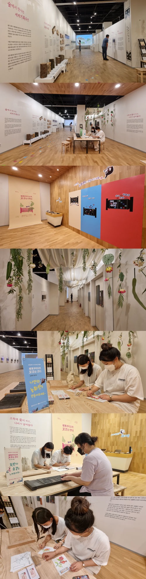 ‘세계기록유산, 꽃길을 걷다’ 전시 공동 개최 한국국학진흥원(원장 정종섭)과 한국수목원관리원 소속 국립백두대간수목원(원장 이종건)은 「세계기록유산, 꽃길을 걷다」공동전시를 국립백두대간수목원 방문자센터 특별전시실에서 6월 3일부터 7월 25일까지 개최한다. *국립백두대간수목원과 한국국학진흥원은 백두대간 및 국학자료에 대한 공동 전시ㆍ교육을 위한 업무협약을 체결(2020년 8월) 국내최초 수목원에서 만나는 유교책판과 능화판 유물 양 기관장의 참석 하에 6월 8일에 개막식을 마친 공동기획전시「세계기록유산, 꽃길을 걷다」는 유네스코 세계기록유산인 유교책판 실물 자료와 백두대간 숲에서 자란 박달나무, 오리나무 등 책판의 원료로 사용된 수종樹種을 함께 전시함으로써 두 기관의 특성을 살린 전시를 선보인다. 옛 선현들은 유교의 가르침을 더 많은 사람들에게 알리고자 자연의 아름다움이 담긴 능화판으로 표지를 장식하여 서적으로 만들었다. 이번 전시에서는 ‘퇴계선생문집’을 비롯한 유교책판 유물 6점과 국화, 석류, 모란 등이 새겨진 능화판 6점, 이를 현대적으로 재해석한 예술작품 12점, 퇴계선생문집을 간행한 과정을 볼 수 있는 자료 4점을 관람할 수 있다. 체험 중심의 전시 행사 이번 전시에서는 문화취약계층을 배려하여 ‘유교책판 촉감 체험’, 오디오 전시해설 장치(AR큐브)와 같이 오감으로 전시를 느낄 수 있는 코너와 함께 전시장 VR영상을 제작하여 한국국학진흥원 유교문화박물관 홈페이지와 국립백두대간수목원 홈페이지에서 온라인 관람이 가능하도록 했다. 아울러 관람객들은 ‘능화판 엽서 컬러링’과 ‘자석 능화판 만들기’코너에서 다양한 체험을 즐길 수 있으며 SNS 이벤트와 만족도조사 참여자에게 능화판의 문양을 활용한 컬러링 키트가 담긴 소도록도 선물할 예정이다. 정종섭 한국국학진흥원장은 “이번 전시를 통해 우리 선현들이 살아온 삶처럼 수려한 백두대간의 자연 속에서 유교책판에 담긴 인문정신을 탐구하는 시간을 가질 수 있길 바란다”라며 “양 기관의 특성을 살려 관람객들이 공감할 수 있는 가치를 담은 전시를 지속적으로 기획하겠다”라고 밝혔다. (출처=한국국학진흥원)