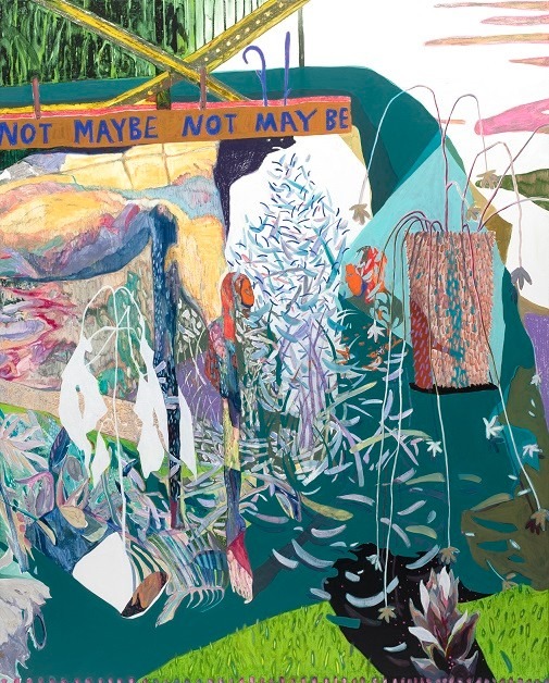 - 딱지를 긁어내다 갤러리도스 큐레이터 김치현 지금 들이키는 호흡에는 지나간 시간의 선택이 담겨있다. 강연이나 성공담에서 흔히 다루어지는 미래에 대한 계획은 어린 시절부터 수없이 들어온 건조한 문구이자 먼 훗날 어떤 과거를 기억할 것이며 어떻게 기억될 것인지에 대한 기약 없는 계약이기도 하다. 빛을 바라보고 살아가는 그 누구도 자신이 밟고 있는 바닥에 드리운 그림자로부터 자유로울 수 없다. 무엇을 어느 방향에서 바라보느냐에 따라 그림자는 사람과 빛의 형태를 모방하는 동시에 본래 모습으로부터 동떨어진 형상을 만들어낸다. 이아현은 잠시 빛을 등지고 서서 자신의 의지가 개입되었거나 어찌할 수 없었던 수많은 사건과 선택이 뒤섞인 과거라는 이름의 그림자를 바라본다. 기억은 다양한 색을 지니고 있다. 만지고 다가갈 수 없는 공간에서 재구성되는 기억은 현재의 감정과 뒤섞이며 본래 사건이 지니고 있던 색과 형태를 왜곡한다. 개인적인 경험이 지닌 폭넓은 가능성은 서로 관계없던 사물을 사건으로 연결하며 당사자에게 뜻밖의 반응을 이끌어낸다. 기억이 축적된 감정과 섞여 왜곡되듯 변질된 개인적인 반응은 오해를 불러일으키며 시작과 끝을 가늠하기 힘든 굴렁쇠를 돌린다. 현실에 존재하는 사건에서 비롯된 작가의 경험은 물리법칙을 무시하고 평면적으로 그려졌다. 화면에 보이는 형상은 하나의 작품 안에서 완결된 구성이 아닌 화면 밖으로 확장된다. 마치 분해된 퍼즐 조각의 일부만 관찰할 수 있는 모양이다. 관객으로 하여금 작품에 담긴 이야기를 유추하도록 이끄는 글자 정보는 명확히 알아보는 것을 의도적으로 방해하기 위해 잘려나간 사진처럼 수수께끼의 단서로 화면에 새겨져 있다. 작품은 전체적으로 다양한 색상이 사용되었지만 높은 밀도로 화면을 채우고 있는 형상들의 복잡함에도 불구하고 시간대를 알 수 없는 정적인 분위기를 지니고 있기에 차가운 온도로 다가온다. 각 화면에서는 작가가 투영된 식물의 모습을 발견할 수 있다. 단단한 껍질이 없는 연약한 소형 식물은 작가의 고통스러운 후회와 치유가 뒤섞여 반복되는 애증의 대상이며 쉽게 망각되고 대체될 수 있는 위태로움을 상징한다. 식물은 크기와 종류를 막론하고 느린 속도와 자극적이지 않은 운동성을 지녔음에도 불구하고 서서히 뿌리내리고 가지를 펼친다. 분명히 존재했지만 알아채지 못한 어느 순간 잎사귀를 펼치고 두려울 만큼 무성했다가 초라하게 시들어버린다. 사람의 기억 역시 가슴 한 구석의 먼지 쌓인 서랍에 주인 모르게 담겨 있다가 점차 가는 뿌리를 내려 마음 곳곳에 쉽게 보이지 않는 실금을 남긴다. 하지만 메말라 추락한 낙엽이 다음 봄의 잎사귀를 품은 씨앗의 양분이 되듯 심경을 채운 균열 위에 가파르게 매달린 감정의 각질은 심장의 맥동으로 서서히 떨어져 나가고 다른 기억을 품을 공간을 만들어낼 것이다. 화면에서 색으로 채워지지 않은 빈공간은 시선이 스칠 때 싸늘하게 부는 바람이 지나가는 자리인 동시에 작품이 작가가 도출한 결론이 아닌 물음표로 끝나는 질문임을 명확히 한다. 마냥 긍정적이지 않은 기억을 곱씹으며 후회를 하고 반복될수록 상처받지 않기 위해 방어적으로 변이되는 가상현실은 관계의 충돌과 단절의 통증을 안고 살아가는 동시대 사람들에게 공감을 불러일으킨다. 이아현은 자신이 투영된 작품 속 이미지가 지닌 고요한 이야기로 굳이 드러내기 싫지만 그럼에도 누군가 알아봐 주었으면 하는 흉터를 그려낸다. 때로는 지난 시간을 바로잡으려는 발버둥보다 무정한 벌판에서 뱉는 한숨이 사람을 가볍게 한다. 작가 노트 소가 여물을 되새김질 하듯 기억을 불러와 하나하나씩 곱씹는다. 반복되는 행위와 함께 수면 잠재기는 한없이 길어진다. 끌려 나온 과거의 이야기들은 현재와 대면한다. 서로 꼬리에 꼬리를 물고 연결되려 애쓰는 꼴이다. 방어기제를 동반한 기억의 왜곡은 거짓된 안정을 취하기 위해 사용된다. 이 합리화는 삼켜지지 않는 이 여물들을 삼킨 것이라 착각하게 만든다. 거짓된 안정은 불편하다. 모든 감각이 안정을 취하기 위해 노력한다. 사실은 왜곡되고 물러진다. 현실과 동떨어진 배경은 실재하지 않는 기억의 모임이기도, 페르소나의 변주이기도 하다. 남아있는 것은 기억도 아니고 부정적인 정서도 아니다. 단지 되새김질하였던 행위만을 기억할 뿐이다. 천천히 곱씹지만 삼켜지지 않는다. 흐물흐물해진다. 이아현 2021.02 홍익대학교 미술대학 판화과 학사, 회화과 학사 졸업 개인전 2021.08 끝나지 않는 반추 Endless Rumination, 갤러리 도스, 서울 단체전 2021. 01 지지 GEGE, WWWSPACE, 서울 2020. 12 UNDEFINED ( )님이 모두에게: , 홍익대학교, 공식웹페이지 2019. 11 밀푀유; 낱장들, 홍익대학교 현대미술관, 서울 2018. 04 ANDLAB Granf Salon, Los Angeles ANDLAB, 미국 (출처=갤러리도스 블로그)