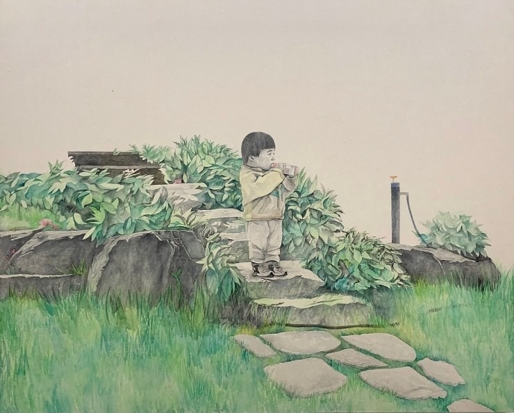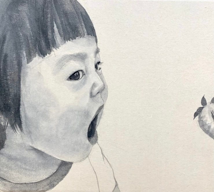 울다가 웃는 사람들 갤러리도스 큐레이터 김치현 아이의 표정에는 성인의 계산으로 납득하기 힘든 고삐 풀린 순수함이 있다. 작은 스침에도 생채기가 생기는 연약한 뺨일 지라도 당장 알 수 없는 어떠한 이유로 찌푸려지면 환경이 지닌 크기와 분위기를 압도하는 향기로 주변을 물들인다. 류은선은 일상에서 접하게 되는 평범한 대상이자 동시대의 한국에서 점차 희귀해지고 있는 어린아이의 모습에서 도시의 메마른 견고함과 소통의 벽을 우스꽝스럽게 무너뜨리는 힘을 발견한다. 예절을 배워가고 있지만 아직까지는 본능적인 감각들이 뒤섞여 뭉쳐진 예측불허의 작은 존재들은 계산적인 어른의 눈으로 바라보고 의미를 부여해 주었기에 생각보다 많은 장막에 가리어진 상태일 수 있다. 사랑을 사람으로 성장시키는 오랜 인내에 비견할 수는 없겠지만 대부분의 작가들에게도 도구와 재료를 처음 다루었던 순간의 생경함과 설렘은 손아귀에 덜컥 주어졌지만 어떻게 다루어야 할지 당혹스러웠다는 점에서 어린아이를 처음 안아보는 경험과 닮아있다. 예술가의 어린 시절에는 스케치북의 사각형 울타리를 거침없이 넘나들며 팔꿈치와 집안 곳곳에 뭉개지는 크레파스의 자유분방함이 있다. 내일을 겁내지 않았던 그 획들은 성인이 되어 작품을 만드는 작가에게 종이의 입자를 타고 변덕스럽게 퍼져나가는 물과 먹의 솔직한 붓질에 담겨 자신의 과거를 돌이키는 창이 된다. 부모가 스마트 폰으로 쉽게 촬영하고 빠르게 꺼내 볼 수 있는 아이의 일상은 필름카메라에서 사진관과 두껍고 무거운 앨범을 거쳐야 다시 볼 수 있었던 지난 시절의 이미지와 과정은 다르지만 비슷한 구도와 사건을 다루고 있다. 어른의 눈에 간직하고 싶은 어린 시절의 장면은 시대를 막론하고 공감대를 이끌어낸다. 작가는 오늘날 디지털 매체에서 대중적으로 다루어지는 화면구조를 가져와 전통재료로 그려냈다. 단순히 인물의 표정과 주변 환경을 사실적으로 그려내는 것이 아니라 의도적인 생략과 절제된 색의 사용으로 자극적인 내용이 아님에도 강렬히 다가온다. 천진난만이라는 소재가 지닌 우스꽝스러운 이미지들이 지닌 유치함은 앞서 이야기한 재료가 지닌 차분함과 정밀함을 요구하는 특성으로 인해 마냥 가벼이 보이지 않고 작품의 분위기에 균형을 잡는다. 작품의 시작에는 첨단의 편리로 만들어낸 디지털 이미지가 있지만 종이와 먹이라는 원초적인 재료가 섬세한 조형적 고민을 거치며 어우러진 결과를 얻기 위해서는 긴 시간을 필요로 한다. 류은선의 작품은 디지털을 아날로그로 되돌리는 과정이기도 하지만 작가가 살아가는 시대성을 간직하고 있다. 화면에 담긴 아이의 모습은 계산 없이 엉뚱하고 귀엽지만 때로는 당혹스러운 순간을 지니고 있다. 먹이 지닌 고요한 색으로 그려졌음에도 냄새와 소리까지 유추 가능한 이미지는 악의 없는 순수한 표현을 뿜어내고 있다. 전시의 제목인 어떤 표정 지어야 할지라는 글귀는 아이의 입장을 이야기해주는 동시에 어른이 느끼는 난처하고 우스운 감정을 담고 있다. 류은선이 그리는 작은 타인들의 얼굴은 평범하지만 쉽게 접할 수 없는 사람들의 초상인 동시에 작품을 관람하는 모두의 지난 시간이 새겨진 기록이다. - 작가노트 어느 날, 조용한 탄천에서 산책하다가 한 아이가 펑펑 우는 걸 목격한 이후로 아이는 내 눈길과 관심을 끄는 대상이 되었다. 아이가 가진 솔직함을 통해 어른들의 내면을 볼 수 있다고 생각하게 되었으며 그 사건은 내 그림 속에 아이를 처음으로 등장시키게 되는 계기가 되었다. 물리적으로는 나와 멀리 존재했지만 내 주목을 끌었던, 풍경 속 아이들을 포착하여 다시 한지에 수묵으로 구체화하고 재구성하였다. 이 과정은 각각의 대상과 나와의 거리를 심리적으로 가깝게 느껴지도록 했다. 나와 물리적으로는 먼 곳에 있던 풍경, 아이 등을 붓 끝으로 눈앞에 옮겨내는 과정을 통해 나만의 기록을 남기는 느낌이 들기도 하였다. 사람들은 제각기 다른 환경에서 어린 시절을 보내게 되므로 내 그림 속 아이의 존재를 보았을 때 느끼는 감정 또한 사람마다 다를 것이다. 각각의 사람들로부터 다르게 보이고 인식될 아이들의 이야기가 궁금해진다. (출처= 갤러리도스)