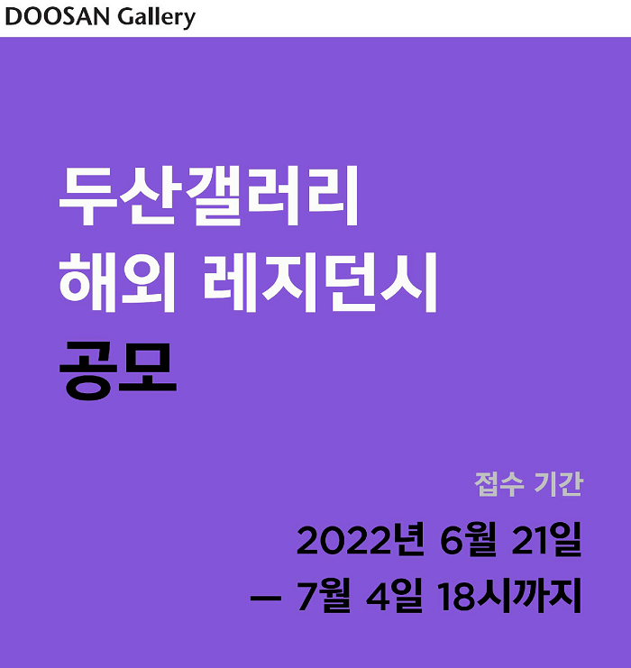 두산갤러리 해외 레지던시는 창작자들의 새로운 경험과 활동을 지원하기 위한 프로그램입니다. 선정된 창작자에게는 2023년 뉴욕 ISCP 레지던시 입주의 기회와 활동비를 지원합니다.