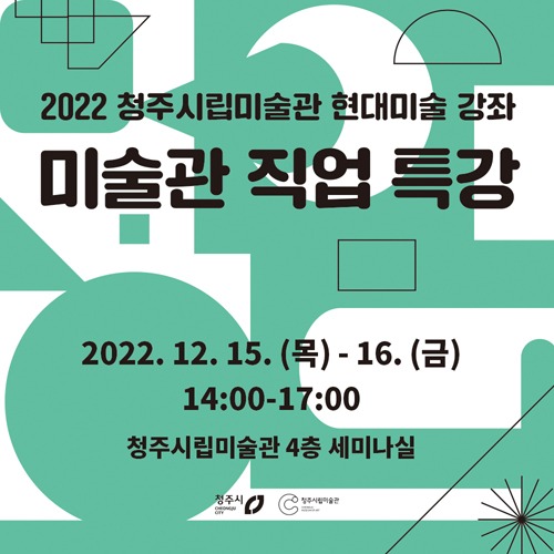 청주시립미술관은 2022년 현대미술 강좌 <미술관 직업 특강>을 운영합니다. 평소에 미술관 관련 직업에 대해 관심이 많은 학생 및 일반 시민, 문화예술분야 관계자 등 관심이 있는 분들의 많은 참여 바랍니다.
