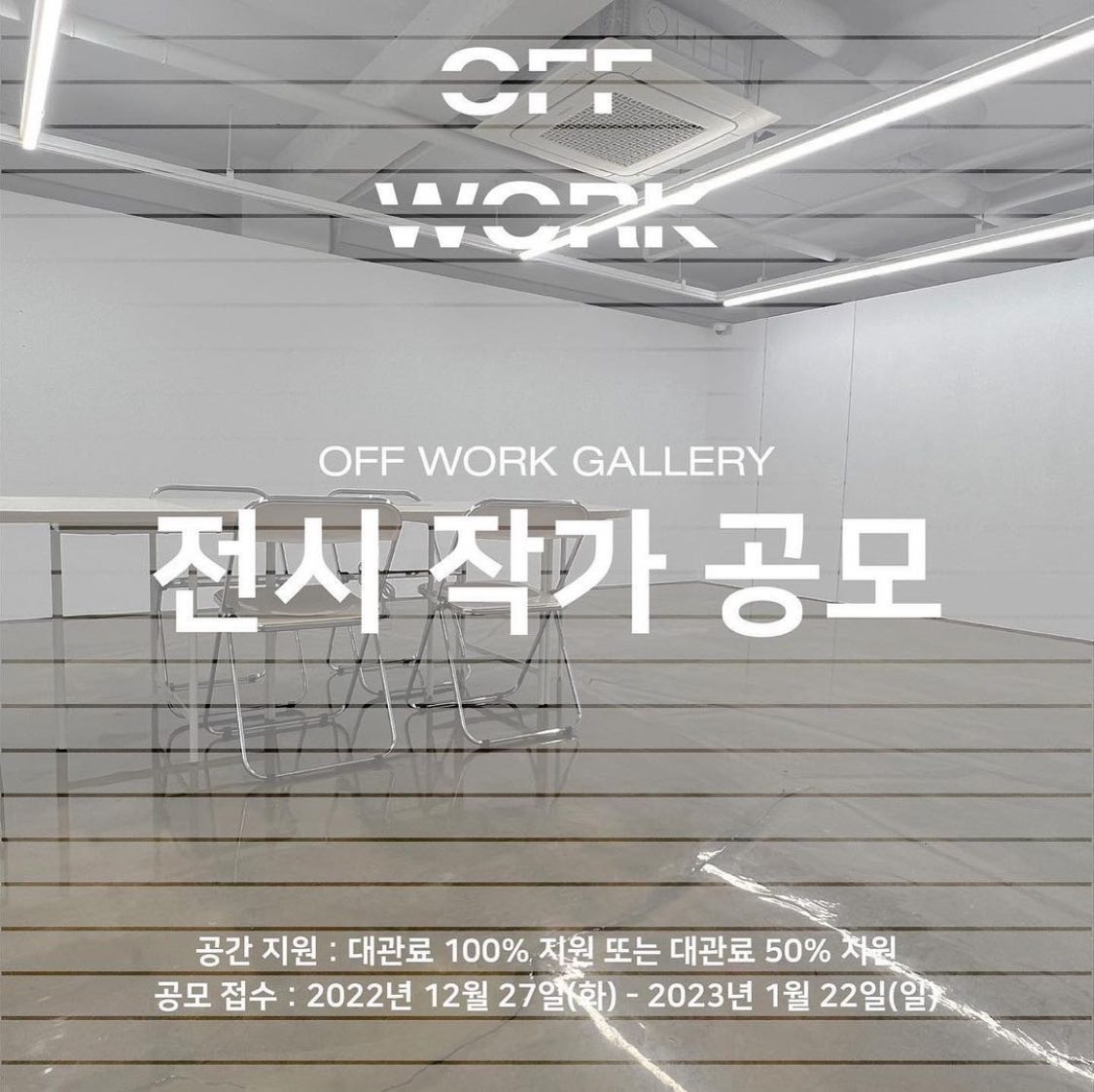 OFF WORK은 예술과 라이프 스타일을 제안하는 OFF WORK MAGAZINE이 운영하는 복합문화공간입니다. 2023년 공간을 함께 채워 나갈 작가 및 기획자를 공개 모집합니다.