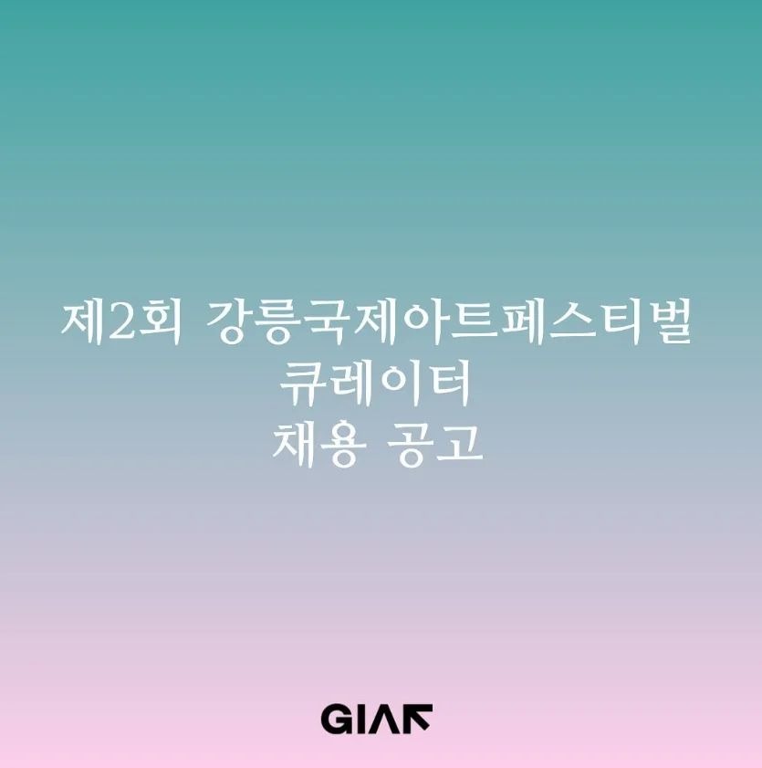 파마리서치문화재단이 주최/주관하고 어떤콜렉티브가 기획/운영하는 강릉국제아트페스티벌(GIAF)은 현대미술과 다양한 연계프로그램을 통해 강릉의 역사와 문화를 탐구하며 지역민들과 함께하고자 2022년 11월 처음 개최되었습니다. 2023년에 진행될 제2회 강릉국제아트페스티벌과 함께할 큐레이터를 모집하오니 관심있으신 분들의 많은 지원 부탁드립니다.