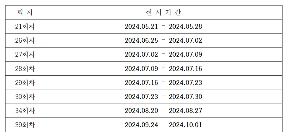 (1.일정 변동 사항은 상시 업데이트 중이니 지원할 당시의 전시 가능 일정은 홈페이지 대관 가능 기간 확인 후 지원하시기 바랍니다. 2.2024년의 대관 가능 기간은 하단 표의 기재된 기간만 남아있으니 참고하시기 바랍니다.)