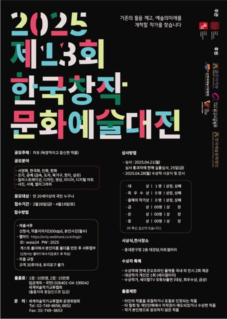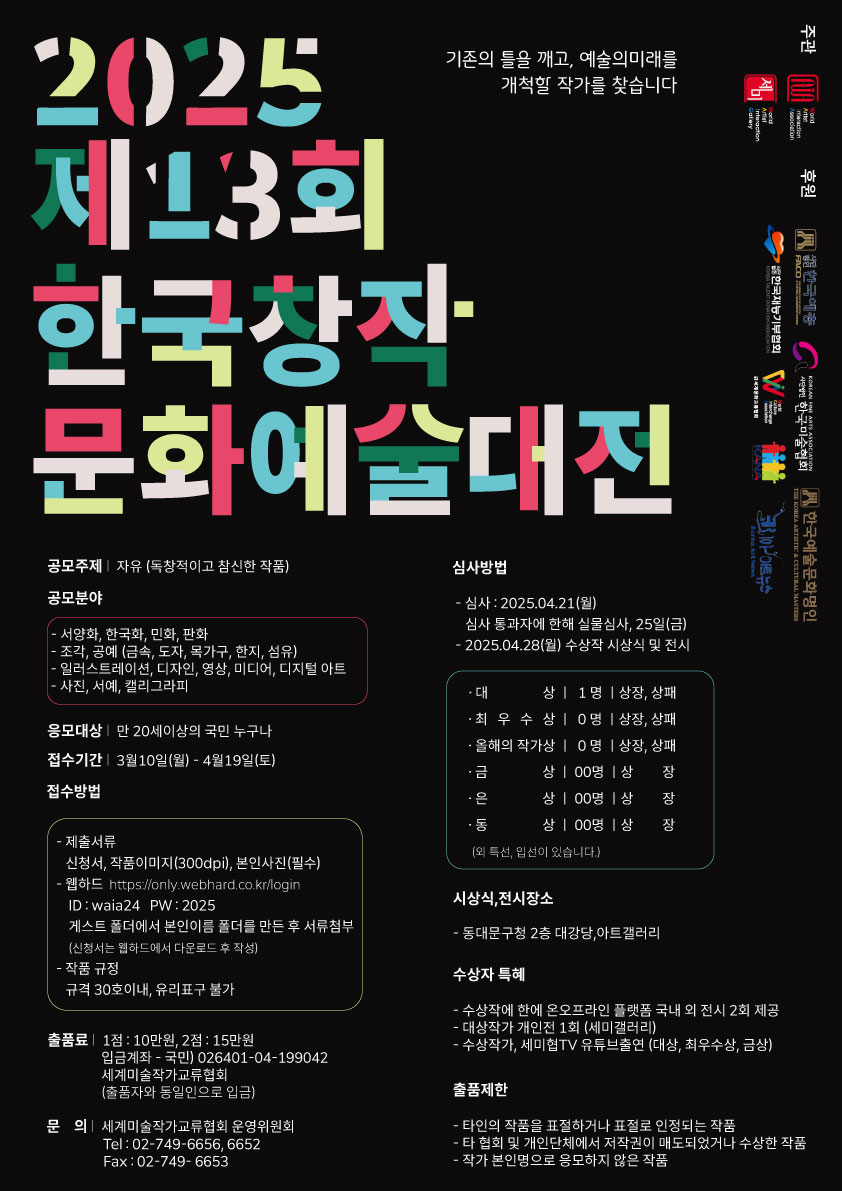 세계미술작가교류협회 2025 제13회 한국창작문화예술대전 공모