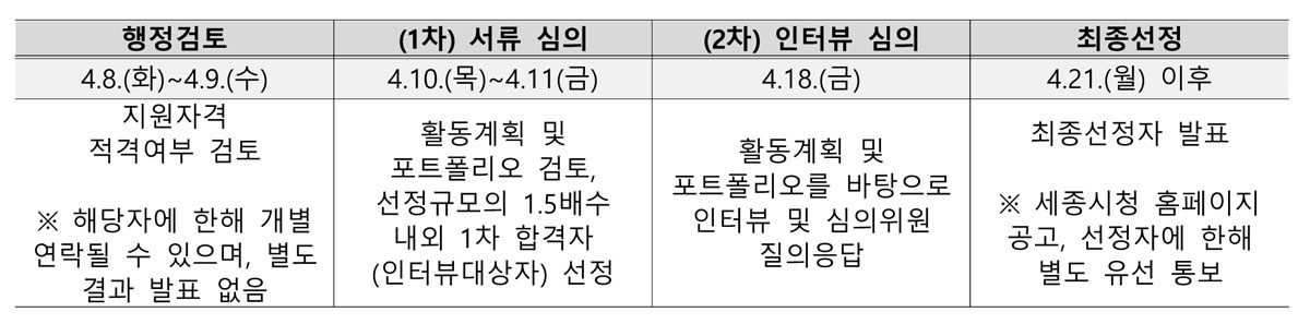 ※ 상기 일정은 심의위원 섭외 및 기타 상황에 따라 변동 가능