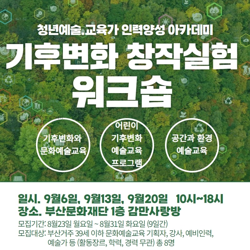 * 본 워크숍은 부산문화재단 문화교육팀 인력양성아카데미와 공간문화예술교육 사업의 일환으로 부산기후.환경네트워크 주관으로 진행됩니다.