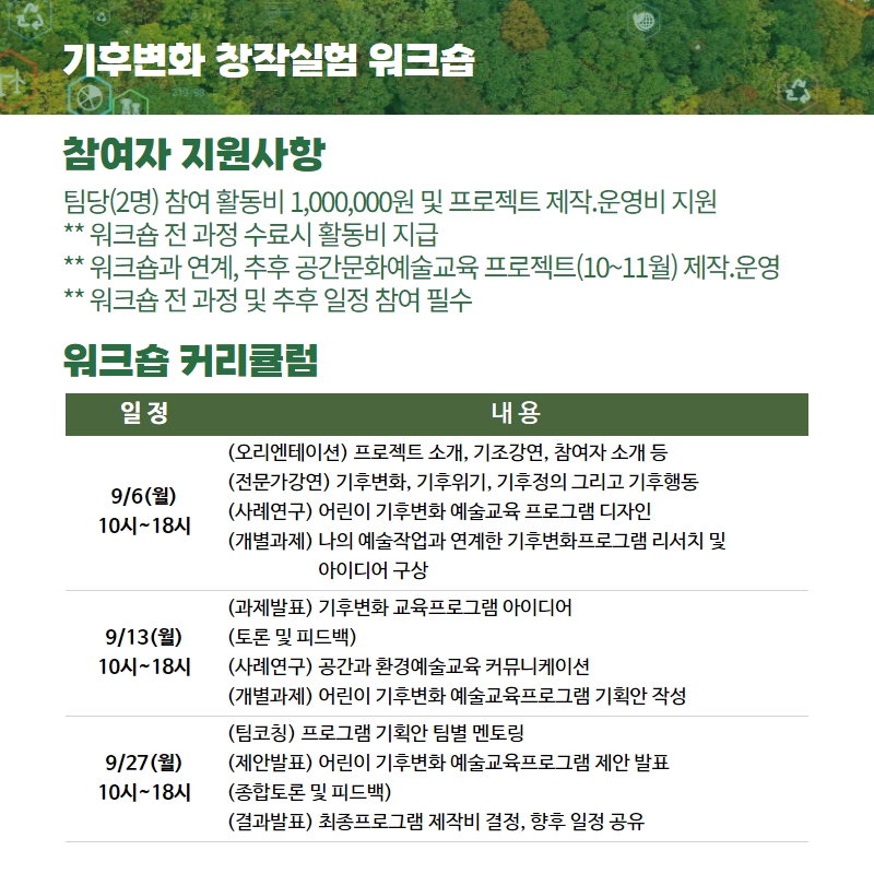 「기후변화 창작실험 워크숍」 참여자 모집