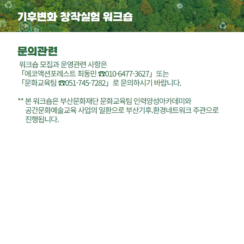 | 문의| | 에코액션포레스트 최동민(010-6477-3627) 문화교육팀(051-745-7282) |