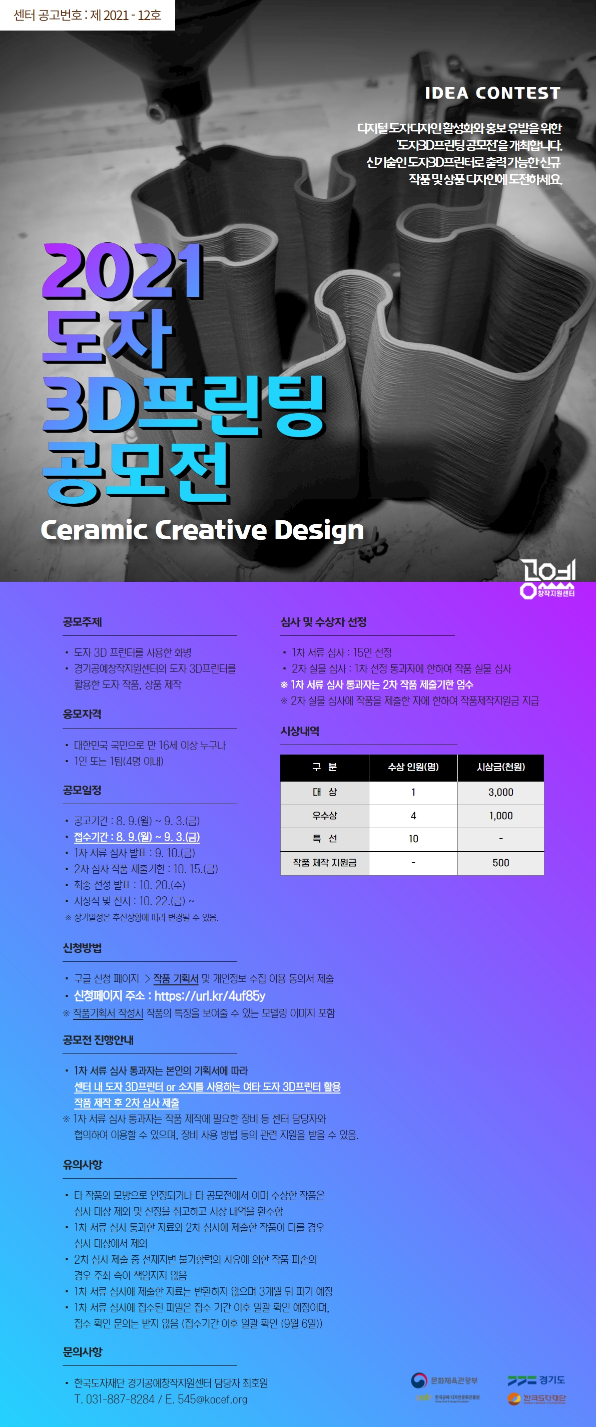 문의| 한국도자재단 경기공예창작지원센터 담당자 최호원 전화) 031-887-8284 이메일) 545@kocef.org