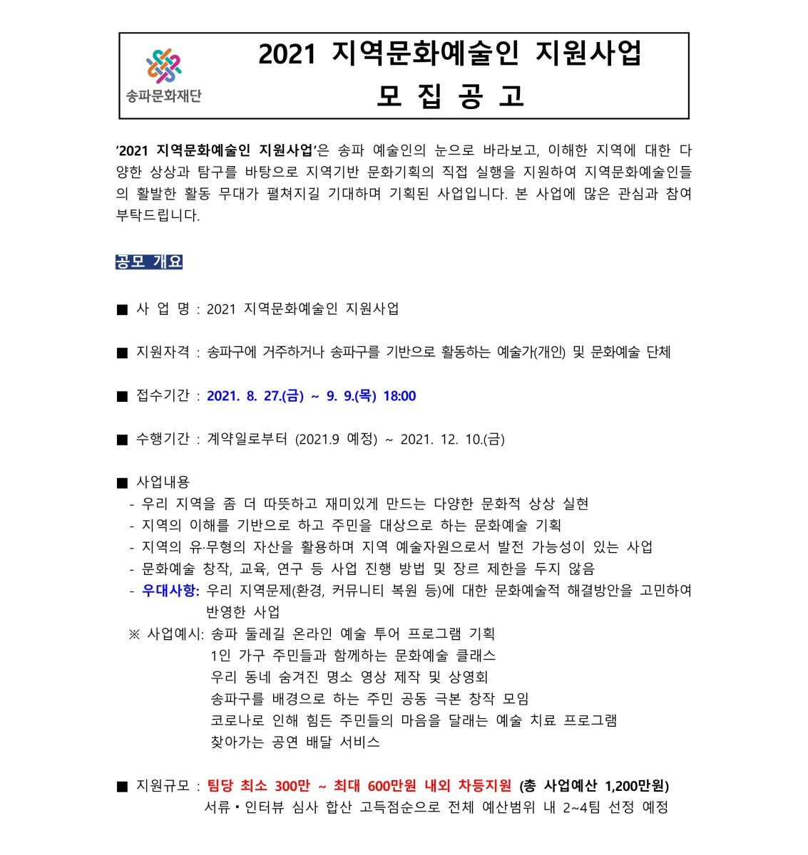 공모처| 송파문화재단