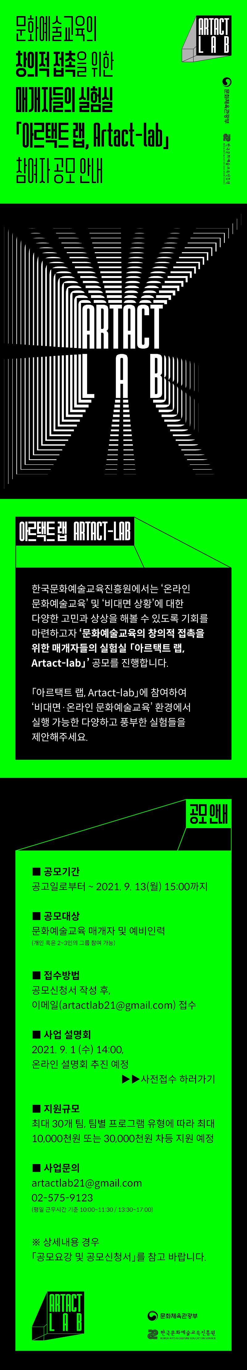문화예술교육의 창의적 접촉을 위한 매개자들의 실험실「아르택트 랩, Artact-lab」참여자 공모