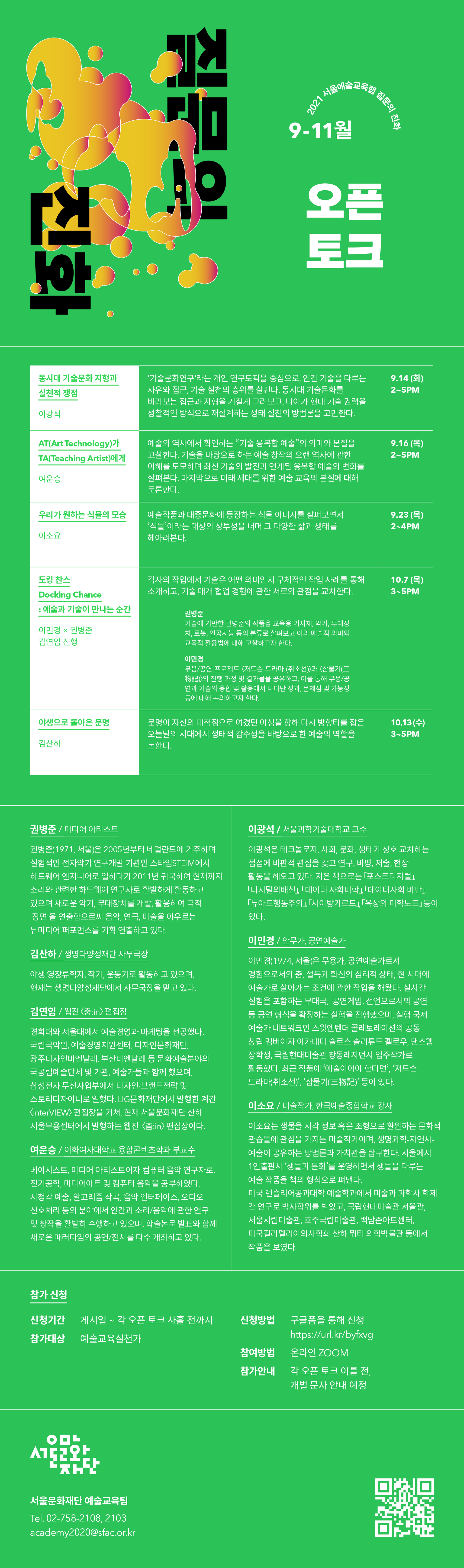 문의| 서울문화재단 예술교육팀 전화) 02-75-2108, 2103 이메일) academy2020@sfac.or.kr