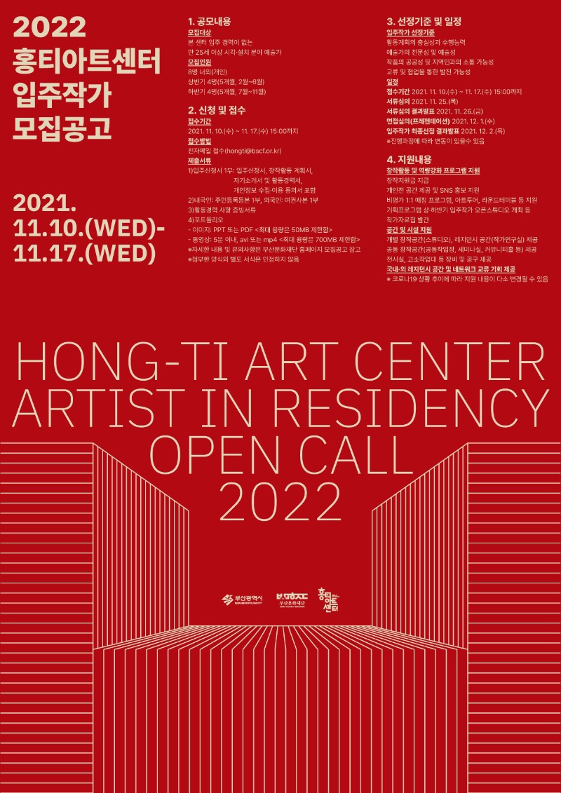 2022년도 홍티아트센터(Hongti art center) 입주작가 모집 공고