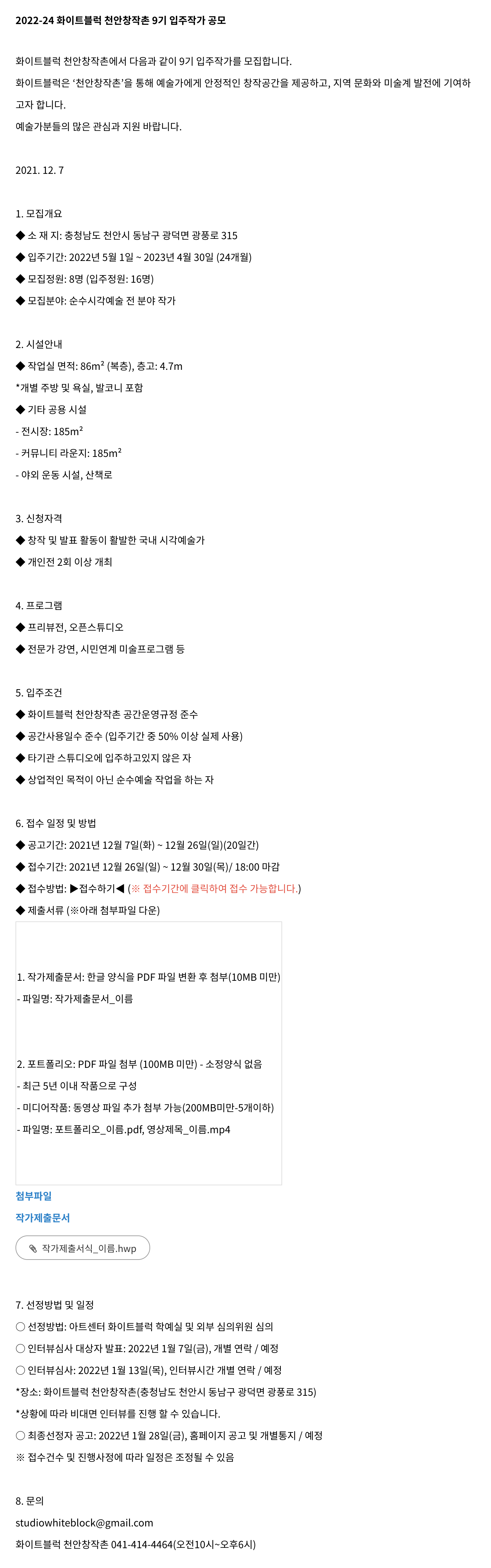 공모처| 화이트블럭 천안창작촌