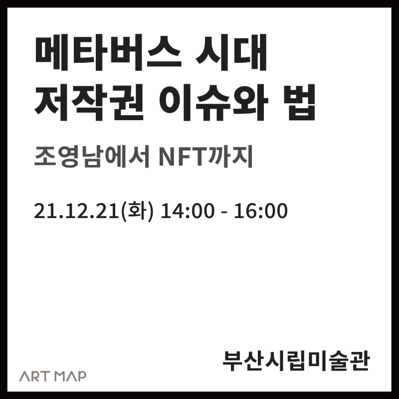 부산시립미술관에서 2021년 하반기 특별강좌 <메타버스시대 저작권 이슈와 법: 조영남에서 NFT까지> 개최합니다.