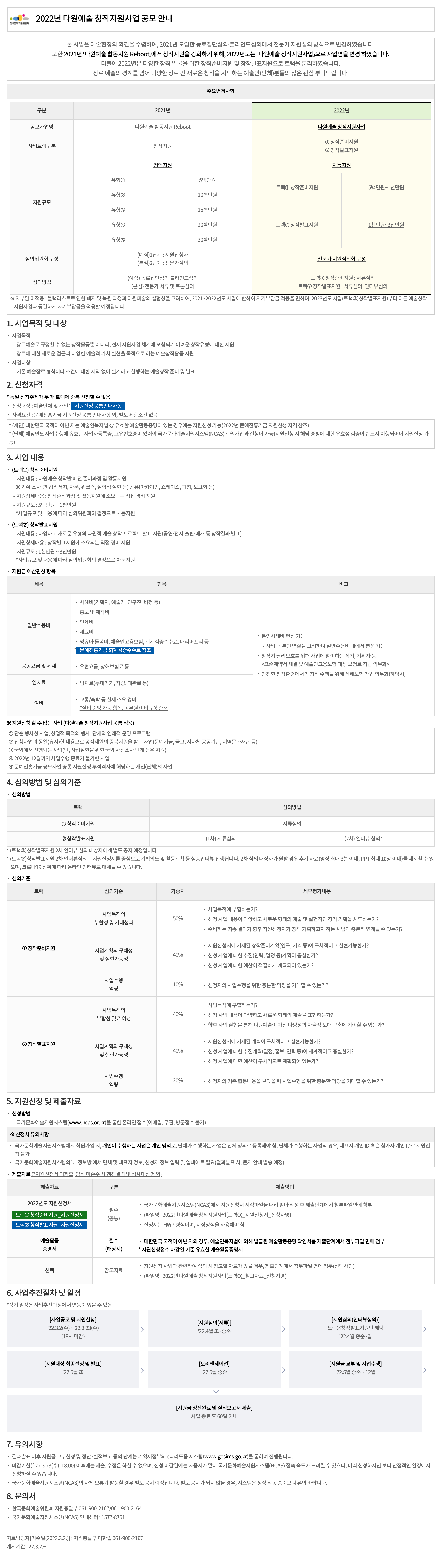 문의| 한국문화예술위원회 지원총괄부 061-900-2167/061-900-2164 국가문화예술지원시스템(NCAS) 안내센터 : 1577-8751