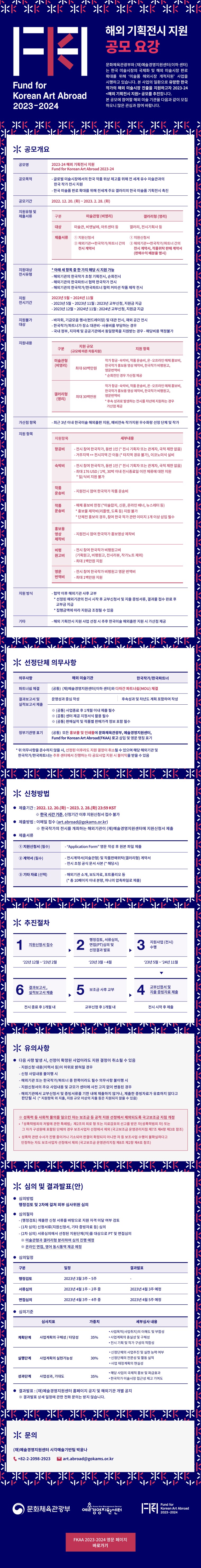 2023 미술품 해외시장 개척지원 <해외 기획전시 지원(FKAA)> 공모