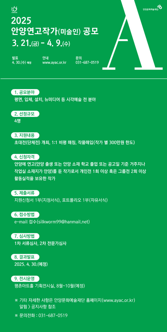 1. 공 모 명 : 2025 안양연고작가(미술인) 공모
