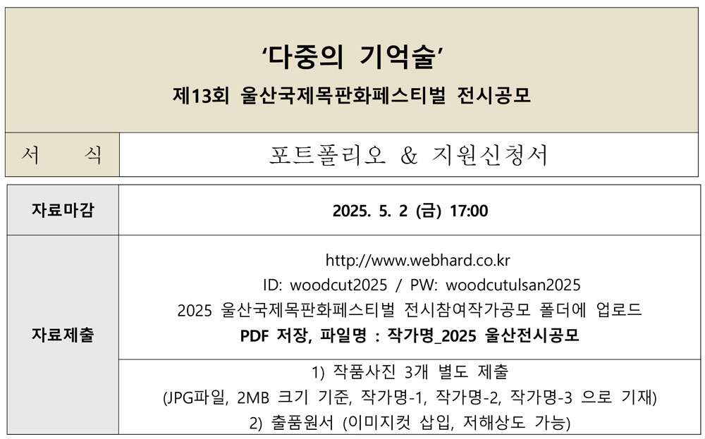 2025 울산국제목판화페스티벌, 《다중의 기억술》 참여작가를 찾습니다!