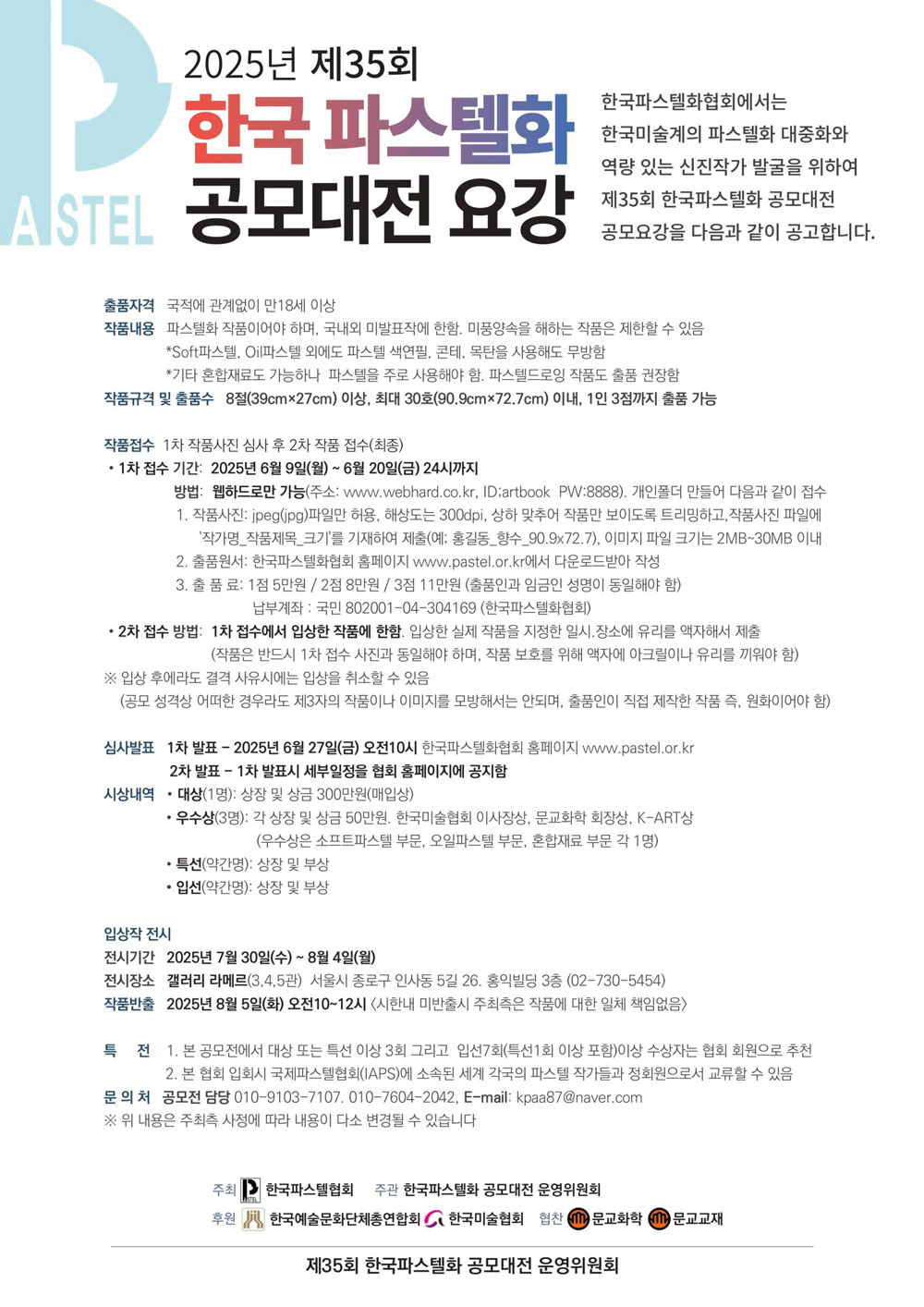 주최: 한국파스텔화협회 주관: 한국파스텔화공모대전 운영위원회