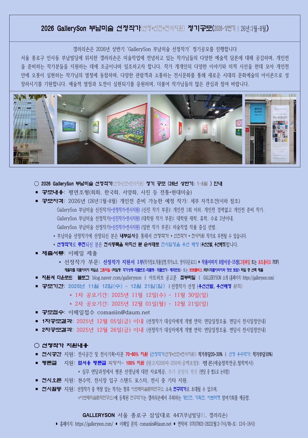 2026 GallerySon 부남미술 선정작가(선정•신진•전시지원) 정기공모(2026-상반기∥26년:1월-8월)