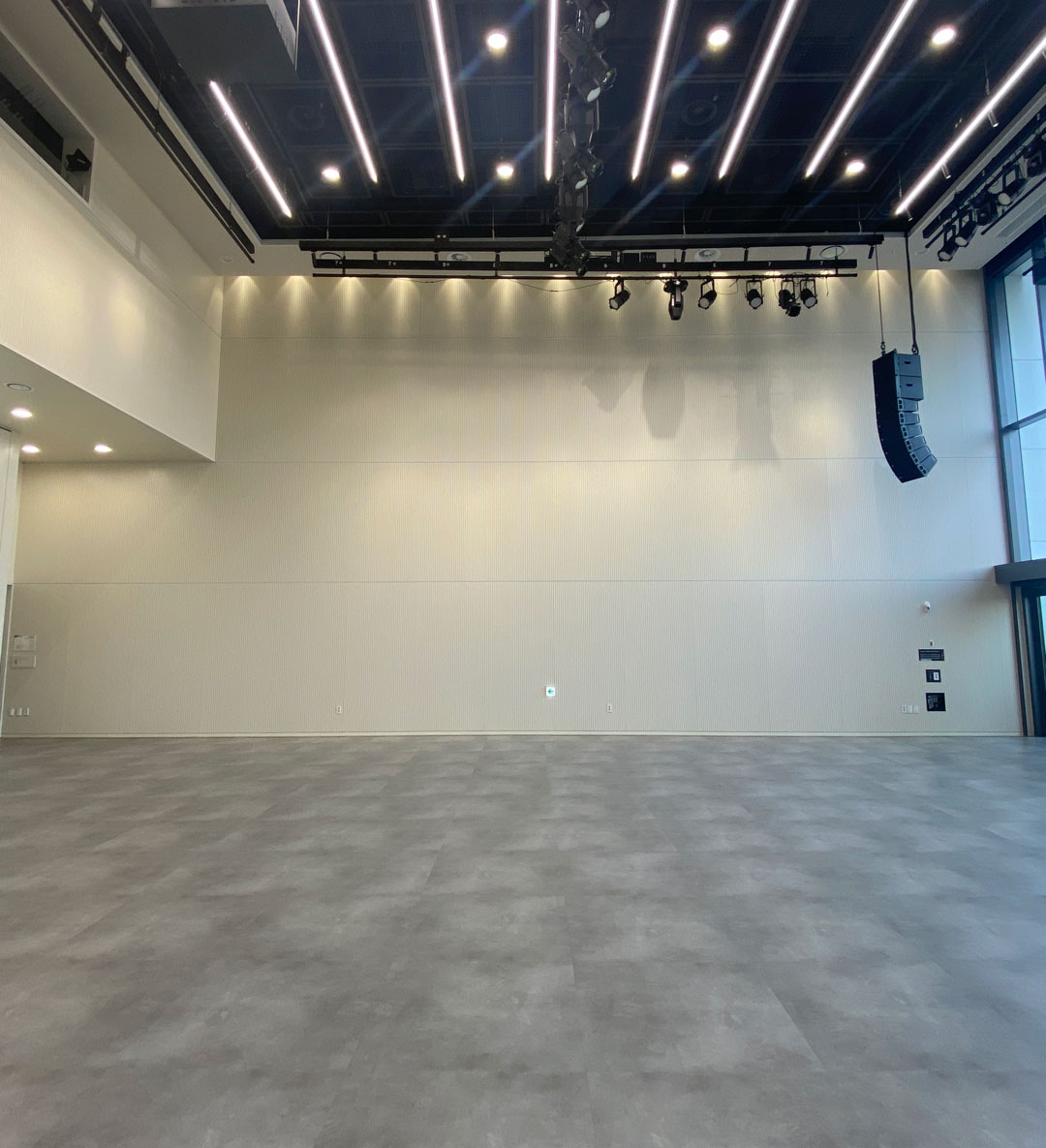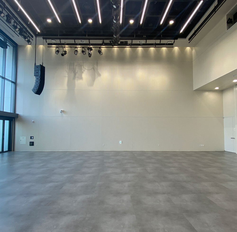 미디어 작업 상영 시 프로젝터와 전문 음향 시스템 등의 장비를 사용할 수 있습니다.