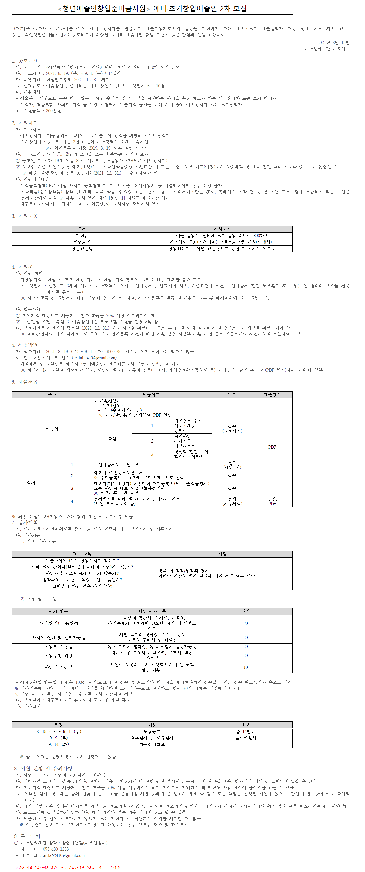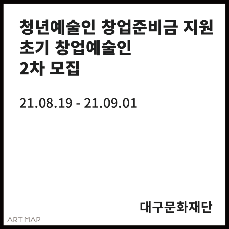 문의| 대구문화재단 창작·창업지원팀(아트랩범어) 전화) 053-430-1258 이메일) artlab2410@gmail.com