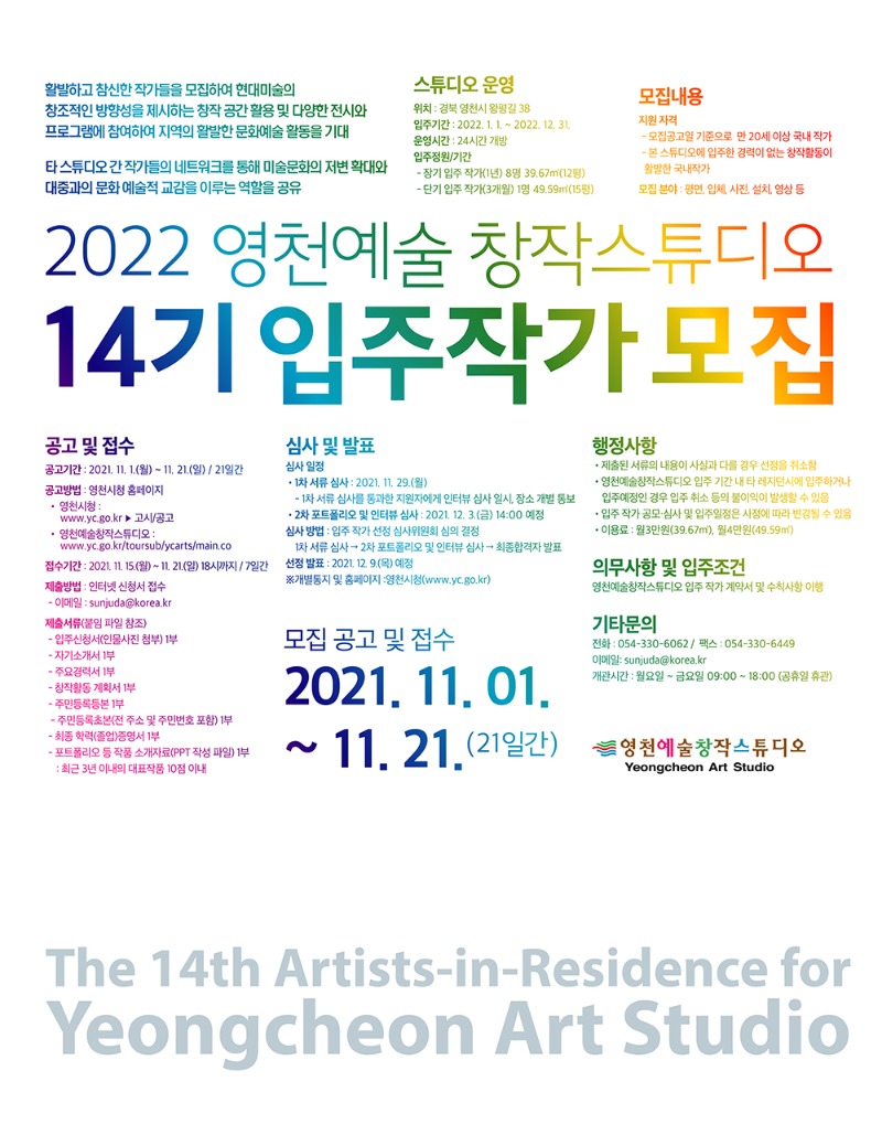 2022년 영천예술창작스튜디오 14기 입주 작가 모집
