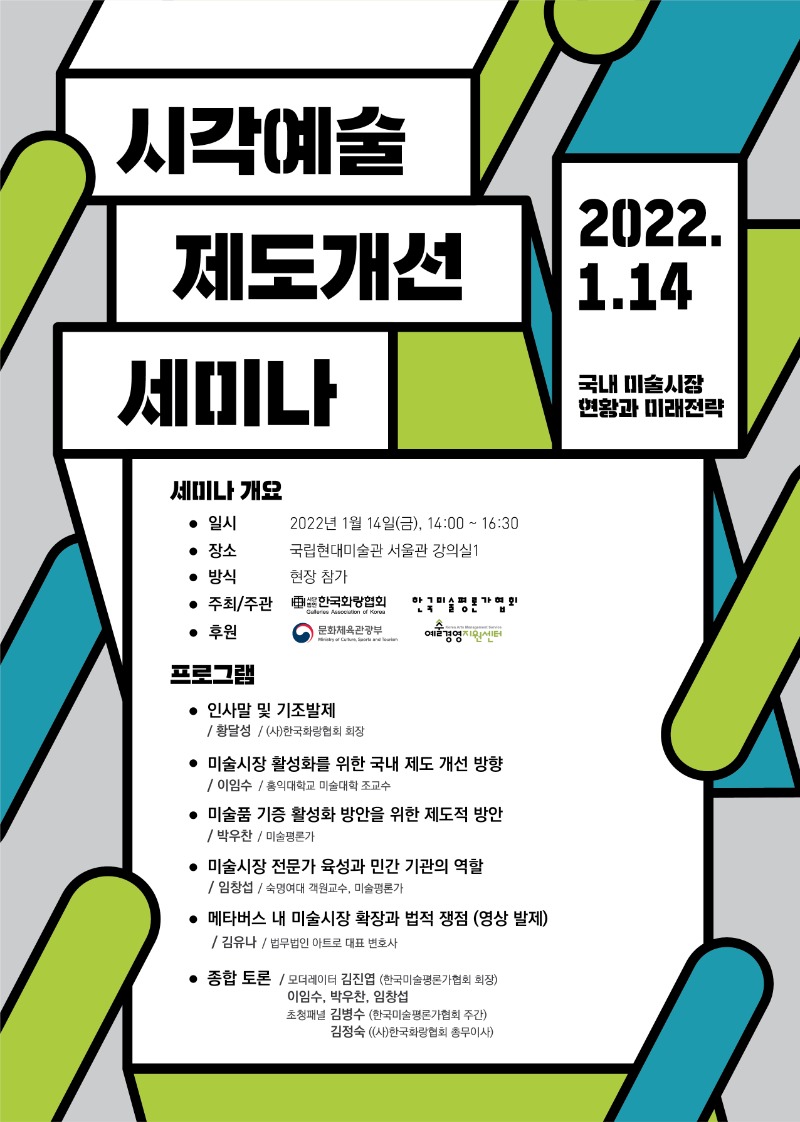 1. 본 세미나는 시각예술 제도개선 세미나로 30명 내외의 현장 세미나로 진행됩니다.